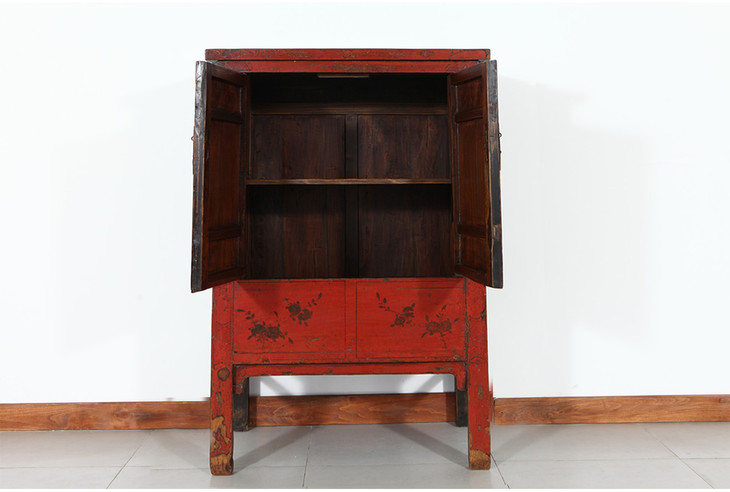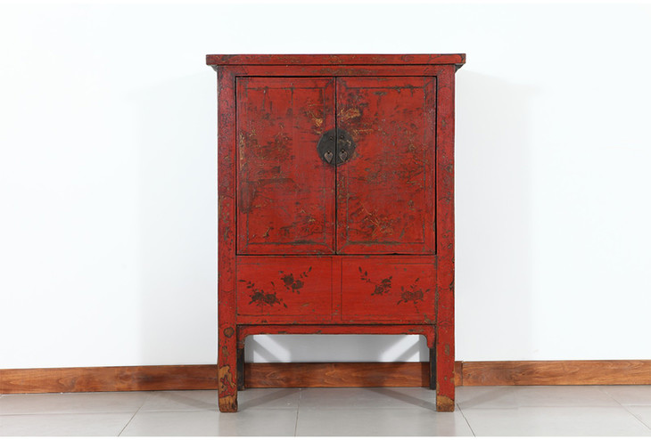 清晚期红漆中号描金柜 编号:Q0410030630 尺寸:96*49*131cm
