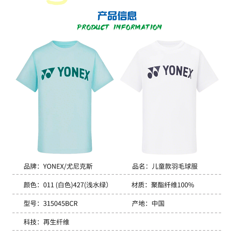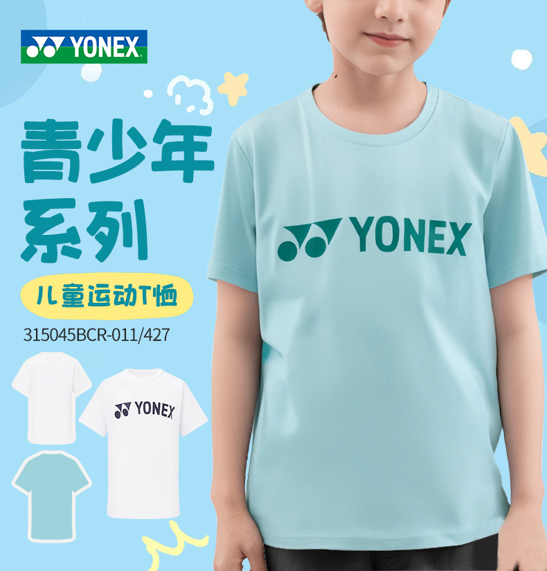 YONEX 2025新款尤尼克斯羽毛球服儿童青少年透气短袖T恤运动315045BCR