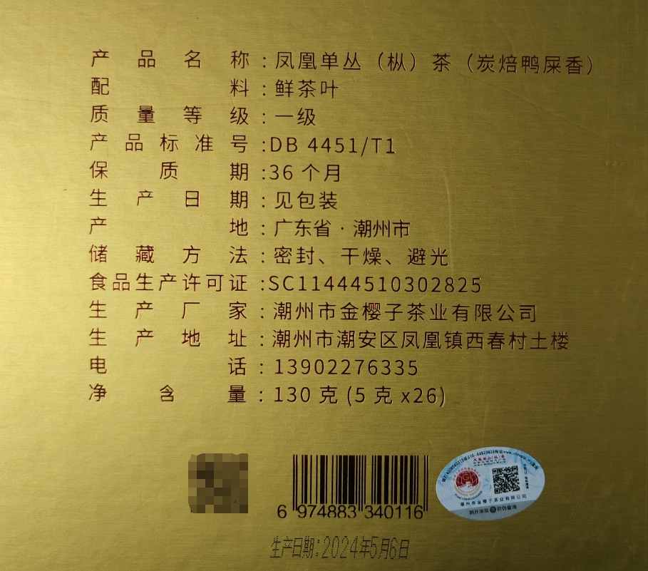 狮头脚丨炭焙鸭屎香 凤凰单丛 乌龙茶 一级 130g 礼盒装