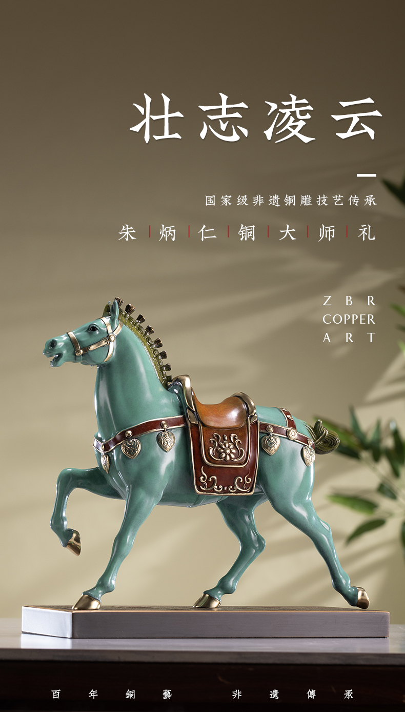 【6F】朱炳仁铜 壮志凌云客厅装饰马摆件家居饰品办公桌摆件办公室摆件