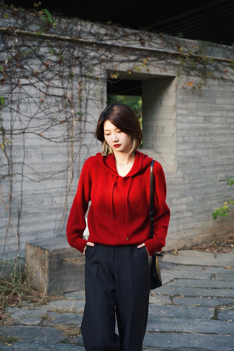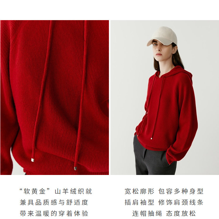 时髦、减龄、温暖的羊毛羊绒连帽针织衫,宽松版型+连帽设计,显瘦好穿,充满慵懒气息,造型感强,它不仅有针织的文艺涵养高阶,而且又很有连帽衫的休闲和活力!