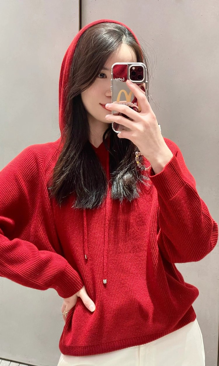 新款“软黄金”羊绒连帽套衫,手感柔软蓬松,质地轻盈,鱼鳞针法,丰富肌理感,打造自在放松的年轻感形象。