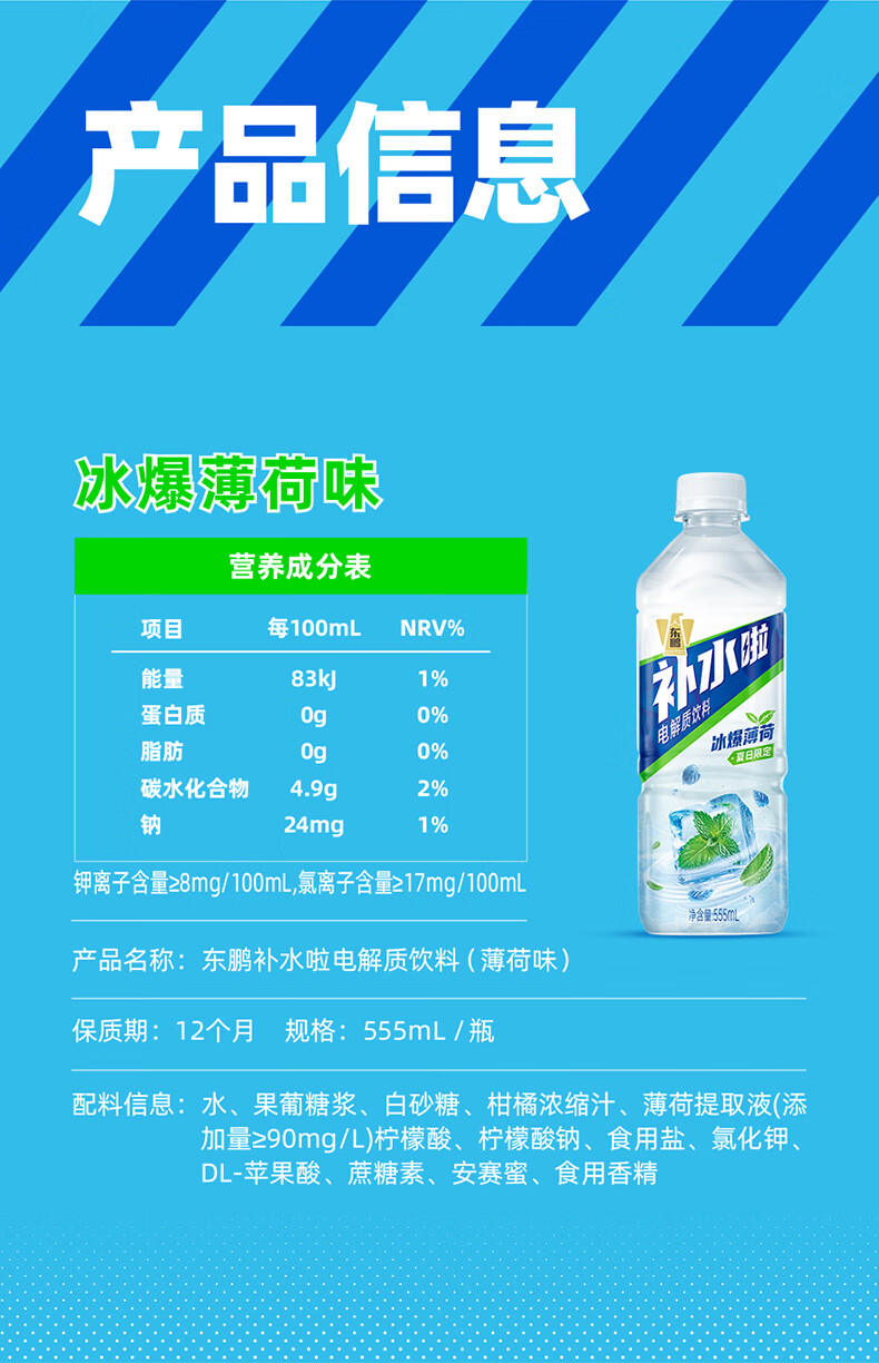 【活动专属 冰爆薄荷 夏日限定】东鹏补水啦电解质水555ml*24瓶整箱装