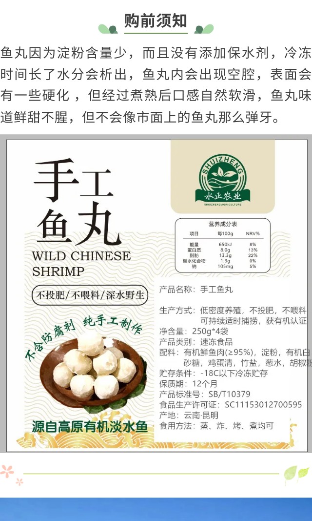 云南水正有机鱼做的手工鱼丸/顺丰空运