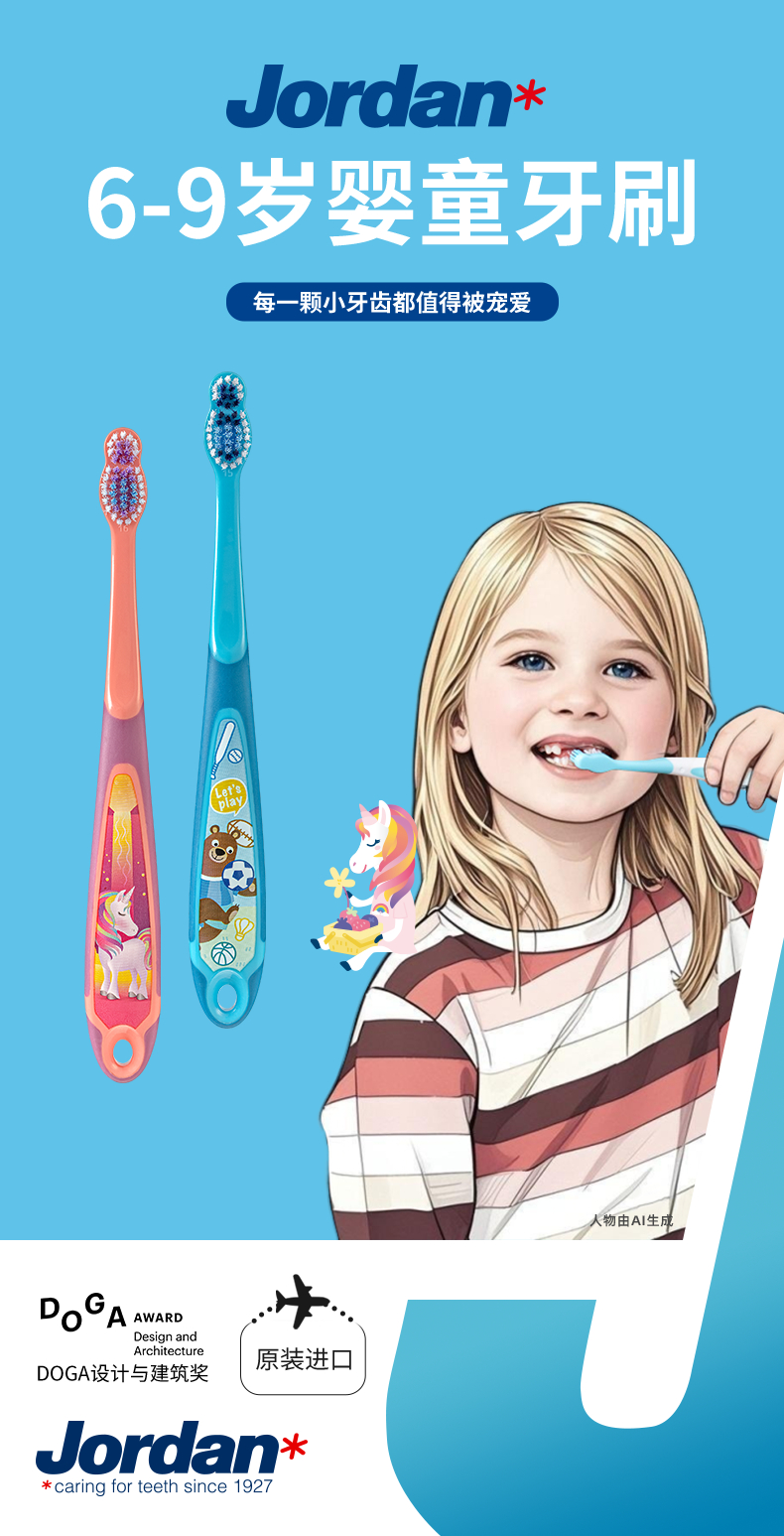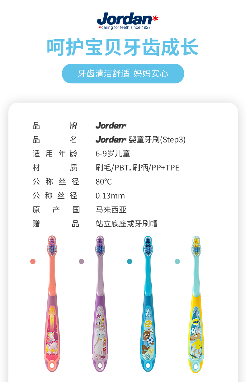 Jordan婴童牙刷Step3(6-9岁)单只装,颜色随机