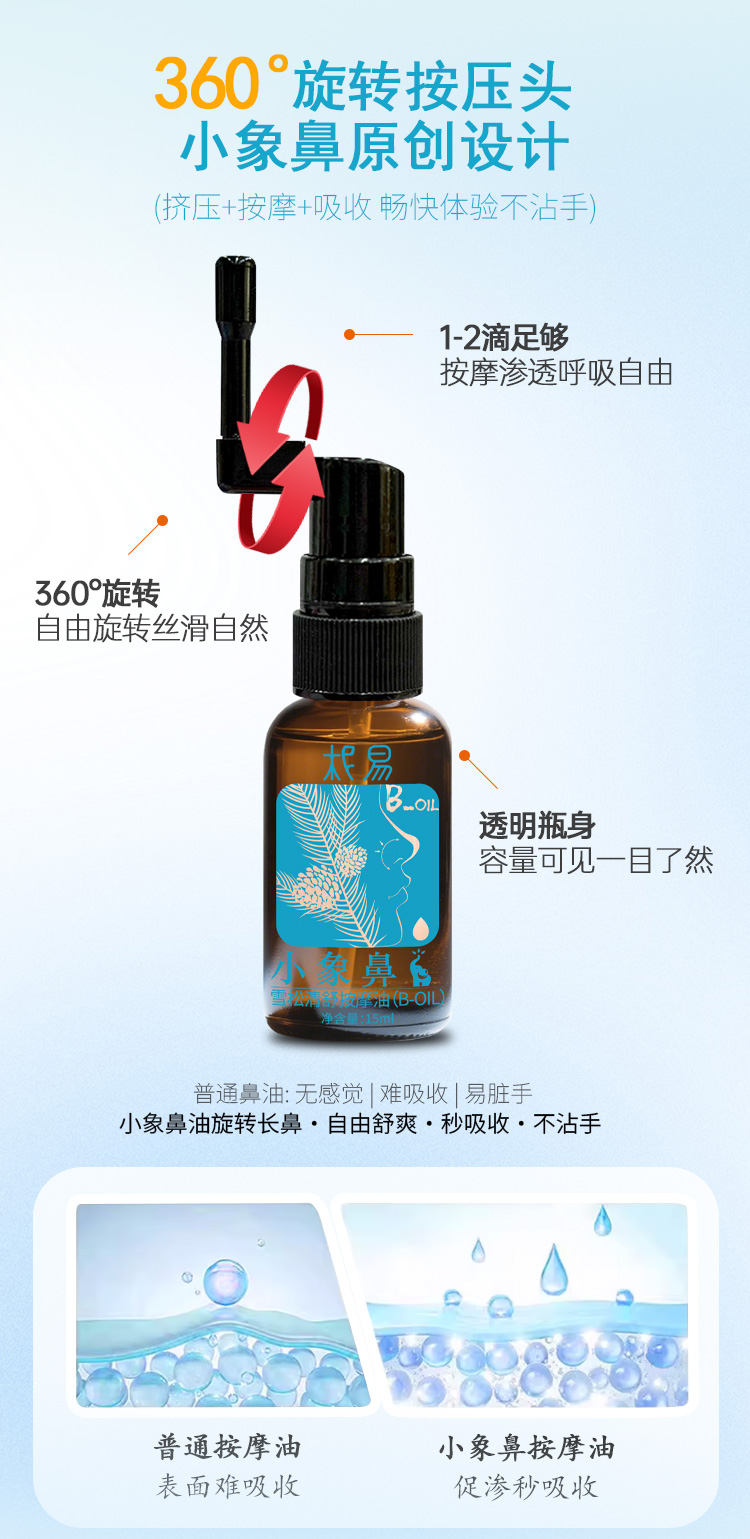 区别于传统喷剂的 “直冲式” 刺激,按摩油通过外部按摩渗透,更适合长期护理。便携设计,可随身携带,无论是通勤途中、办公间隙还是户外出行,随时取出按摩鼻翼,快速缓解鼻腔干燥、堵塞等不适,不影响日常活动。