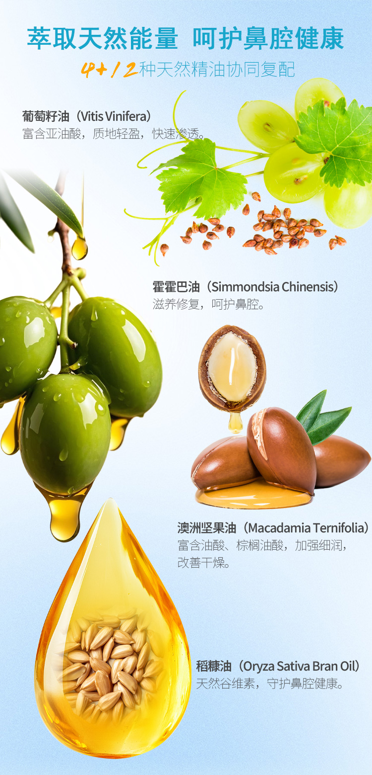 一款以天然成分为核心、专注缓解鼻腔不适的护理产品,旨在通过温和滋养,改善鼻腔环境,让呼吸回归顺畅。