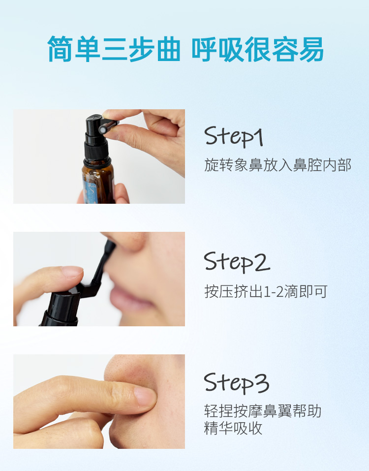 ②舒缓鼻腔敏感:针对过敏性鼻炎患者,温和滋养黏膜,增强鼻腔抵抗力,减少外界刺激带来的不适;