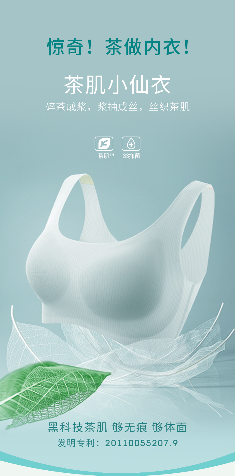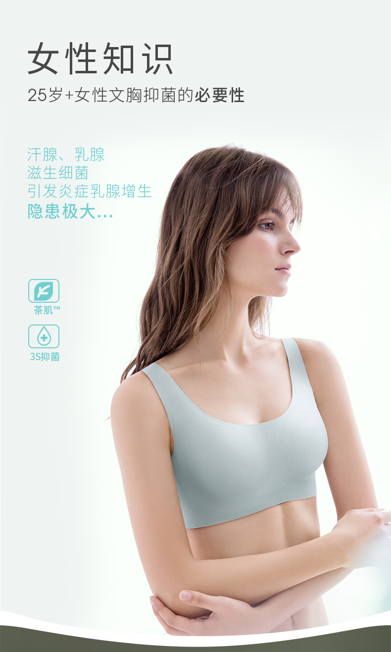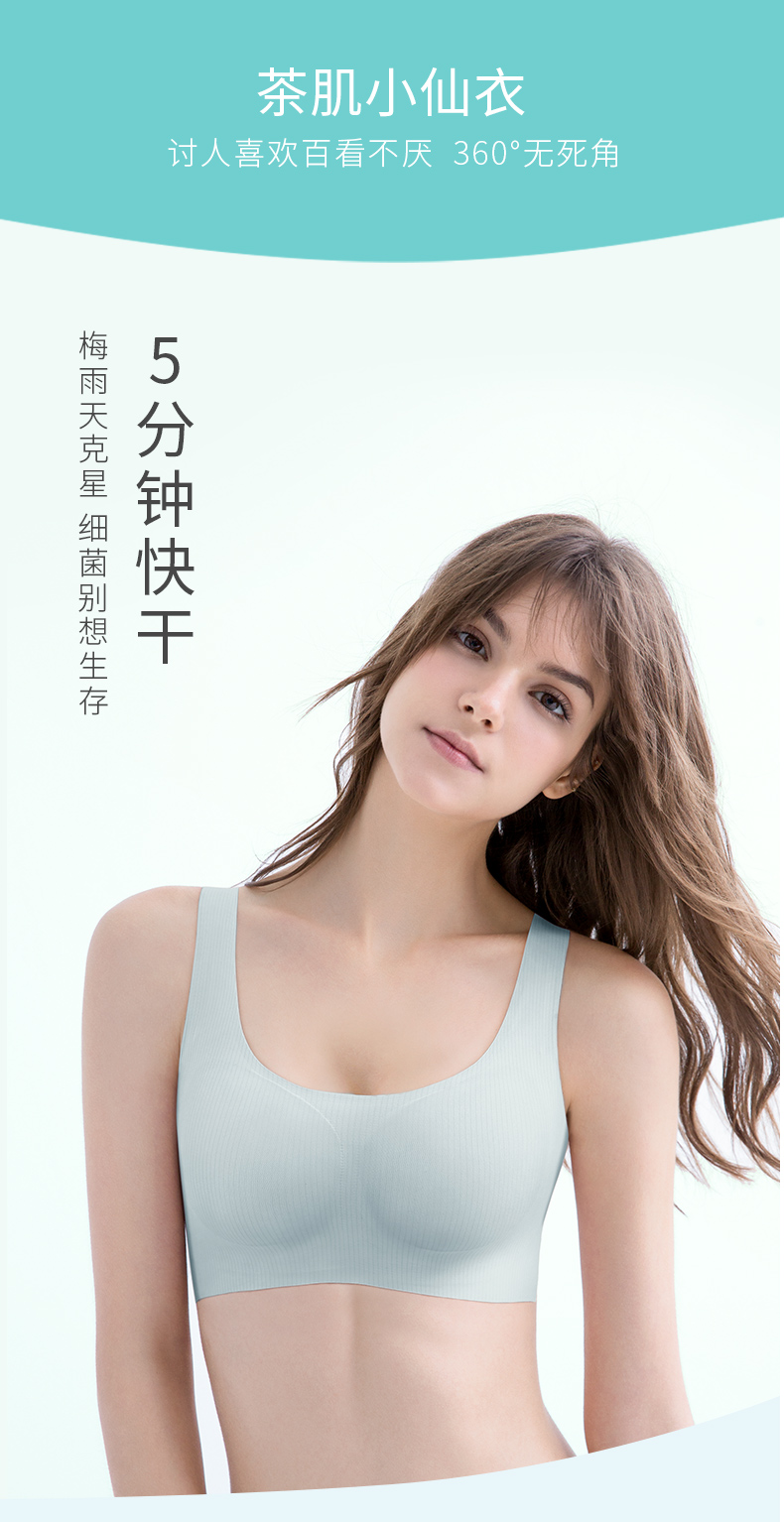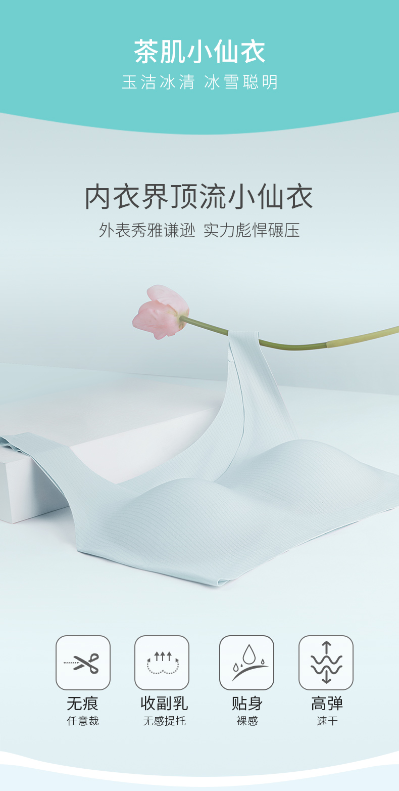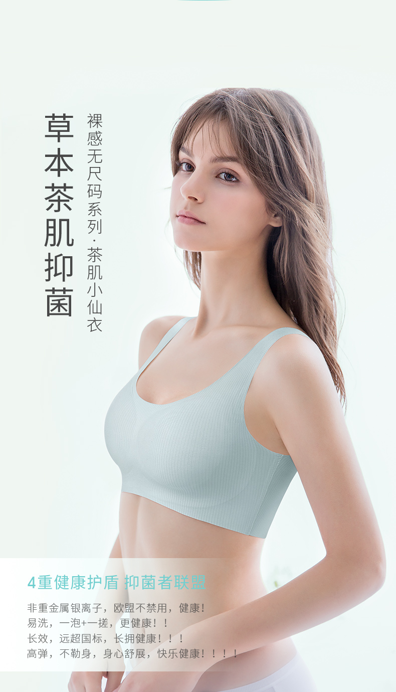 [【下架】【A-C杯】润微茶肌抑菌、一片式无痕内衣背心文胸 倾心无痕【小胸光面BC】