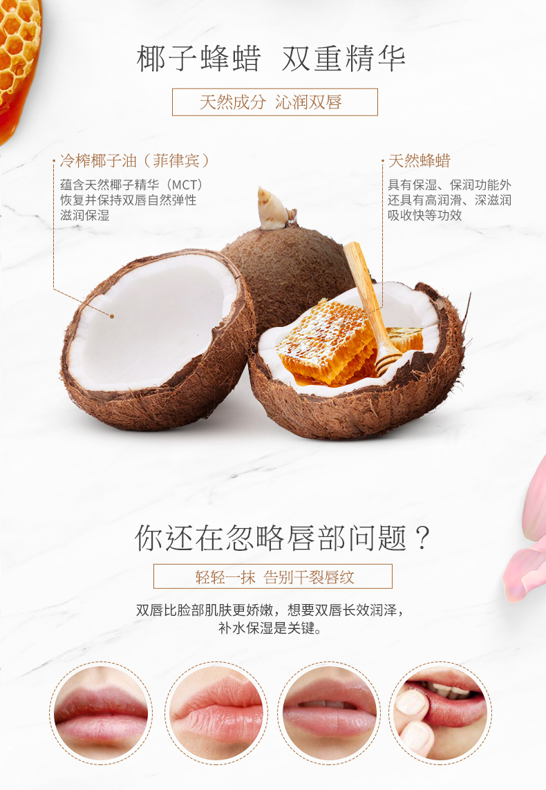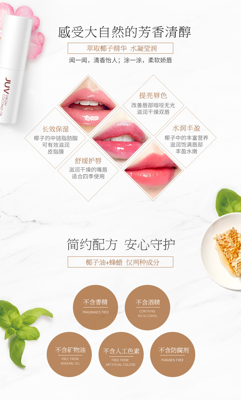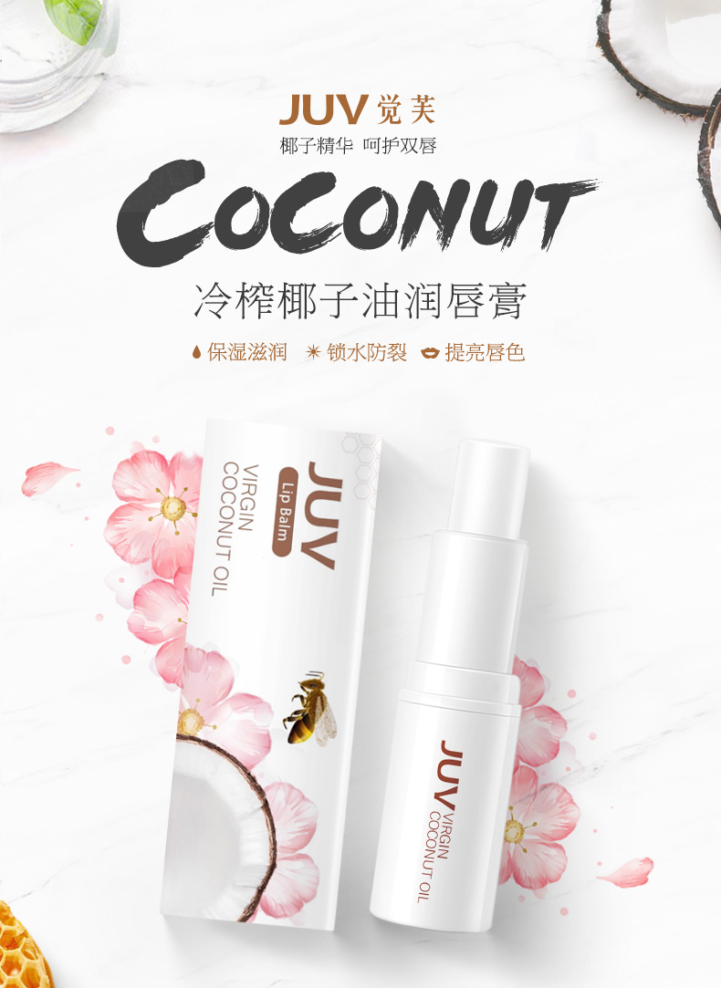 JUV觉芙椰子油润唇膏保湿无色护唇油学生唇膏女男