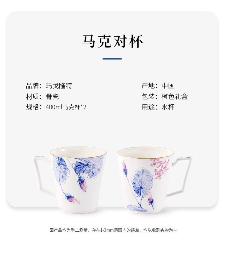 【6F】玛戈隆特荷莲盛宴马克杯情侣对杯骨瓷杯子大容量水杯2只装礼盒装