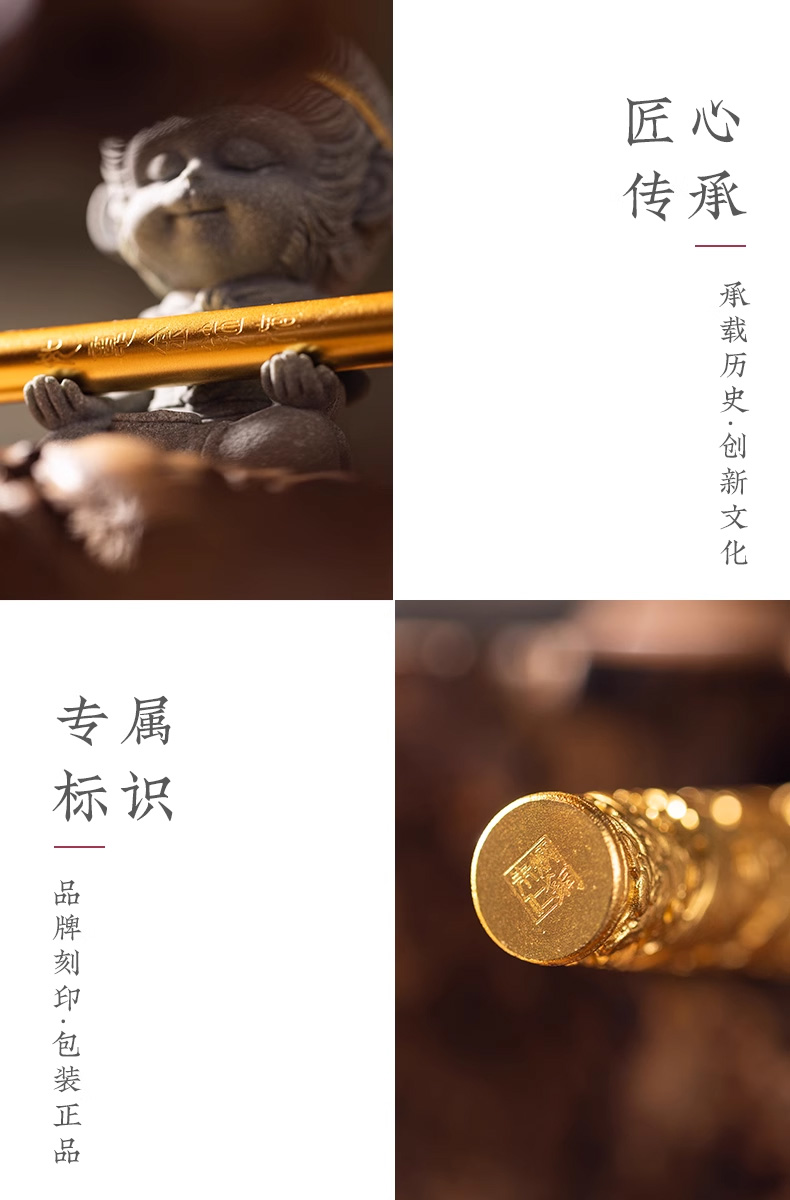 朱炳仁铜 如意金箍笔套装礼盒铜笔齐天大圣笔架摆件悟空金箍棒