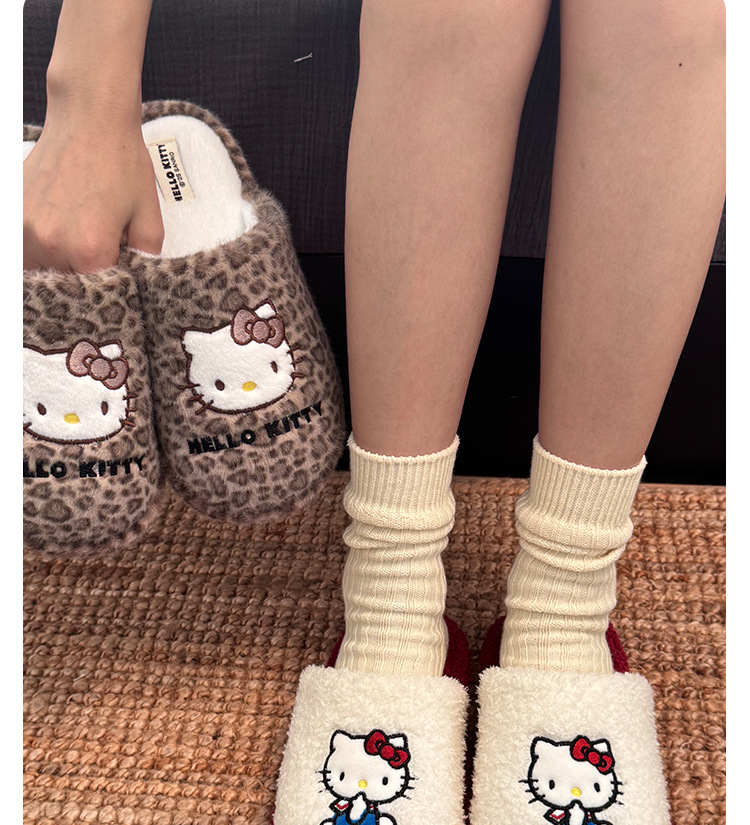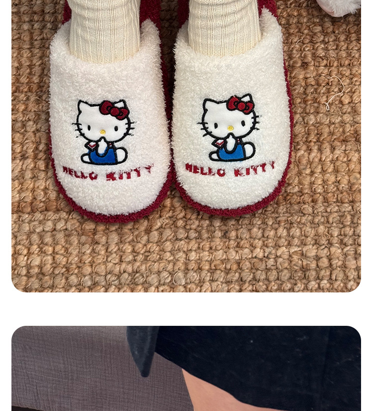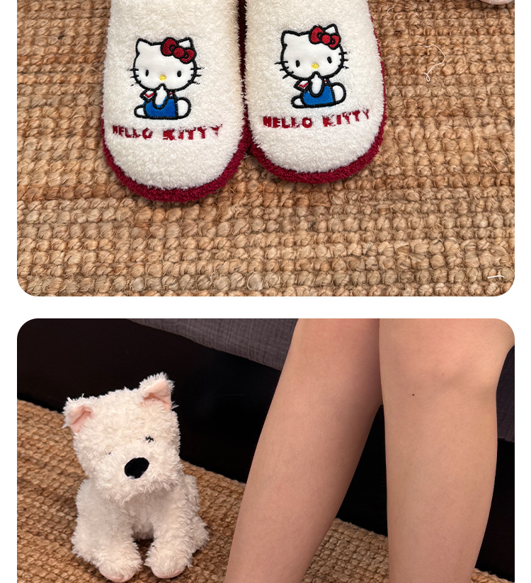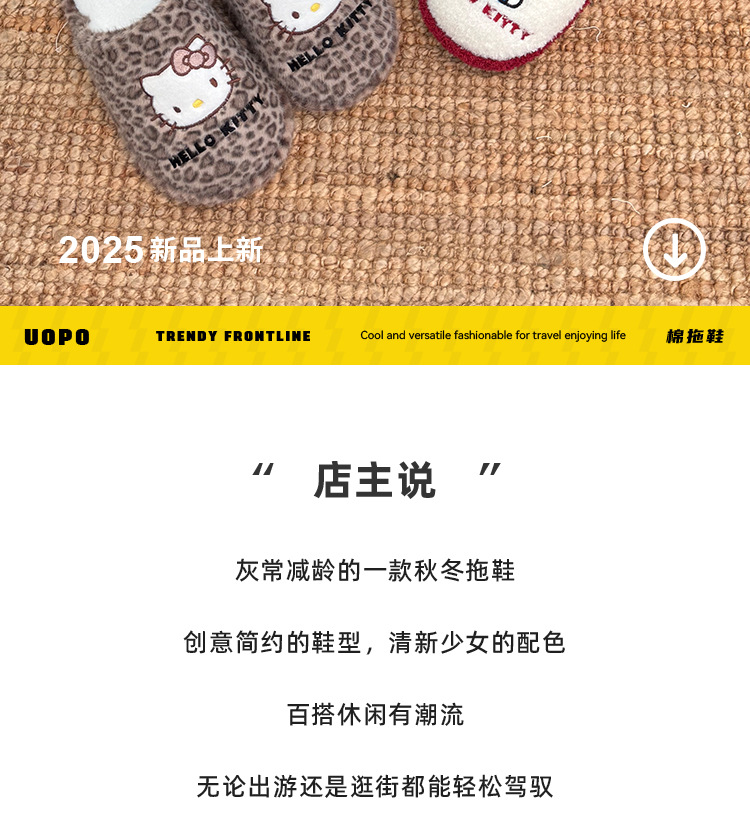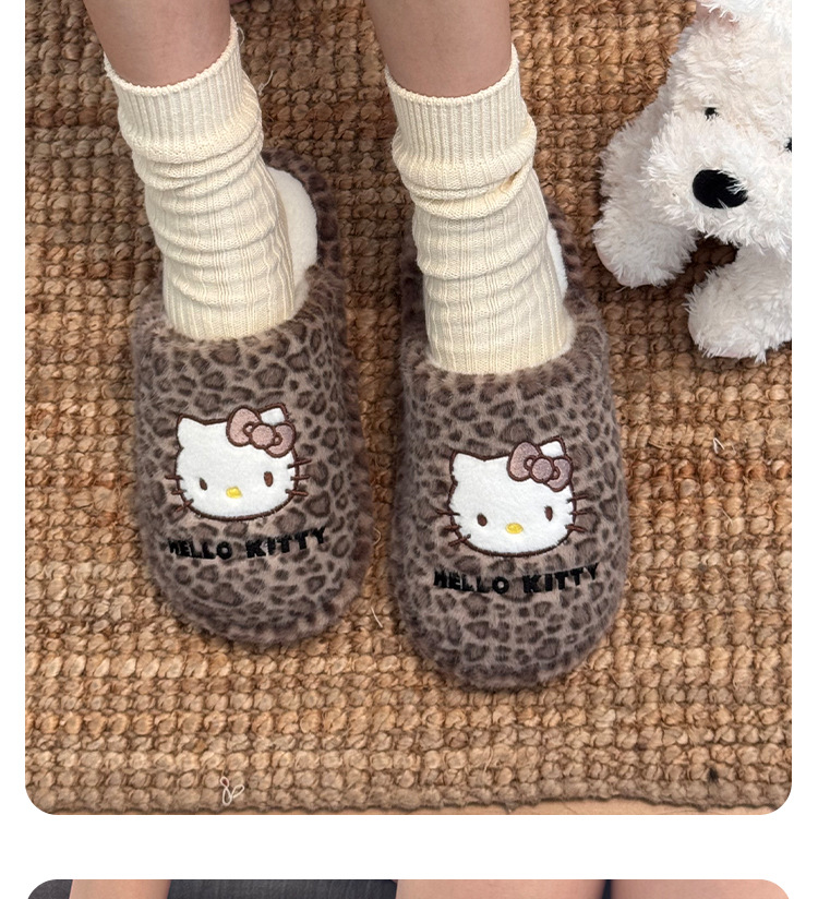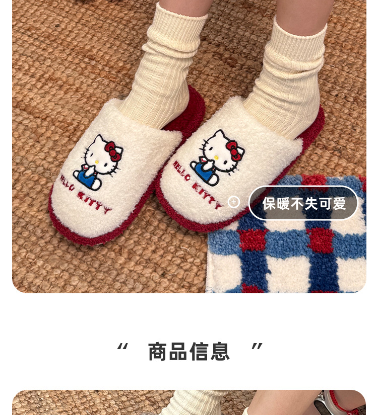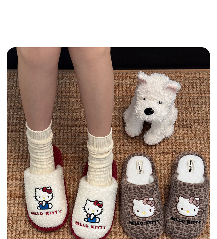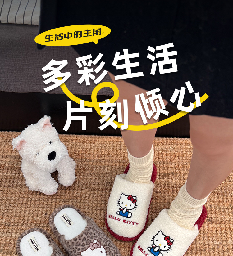 正版kitty!2025秋冬棉拖鞋女冬天室内家用防滑保暖加绒卡通三丽鸥毛毛拖鞋可外穿
