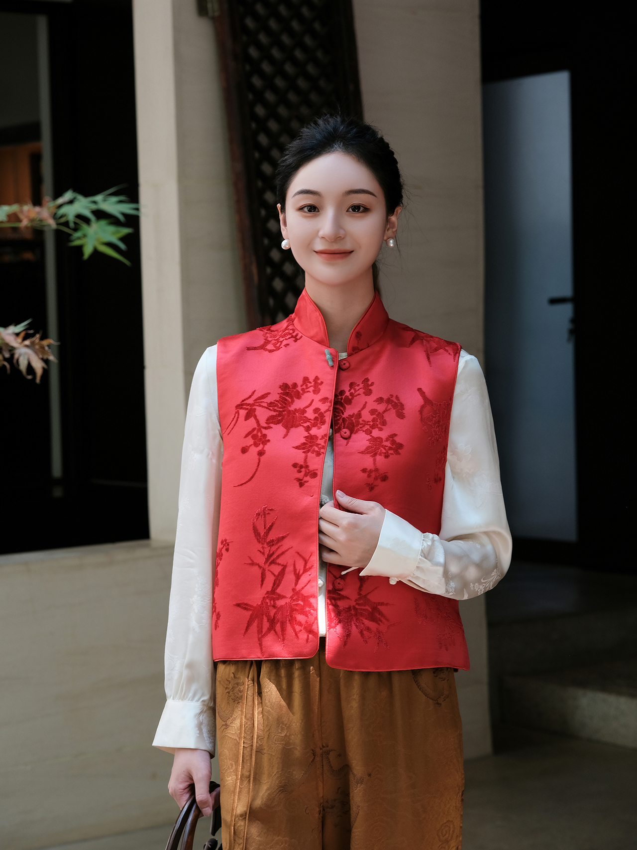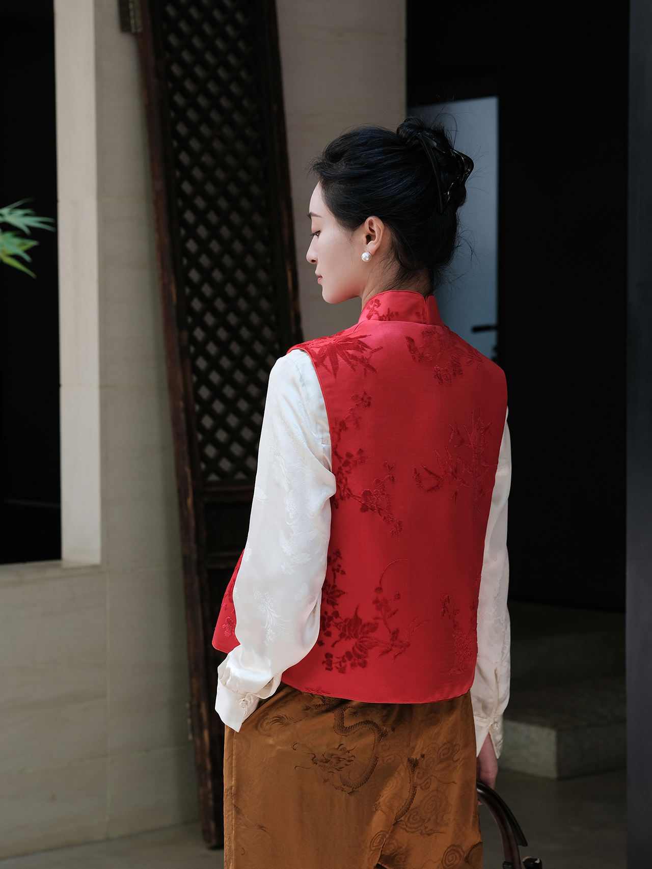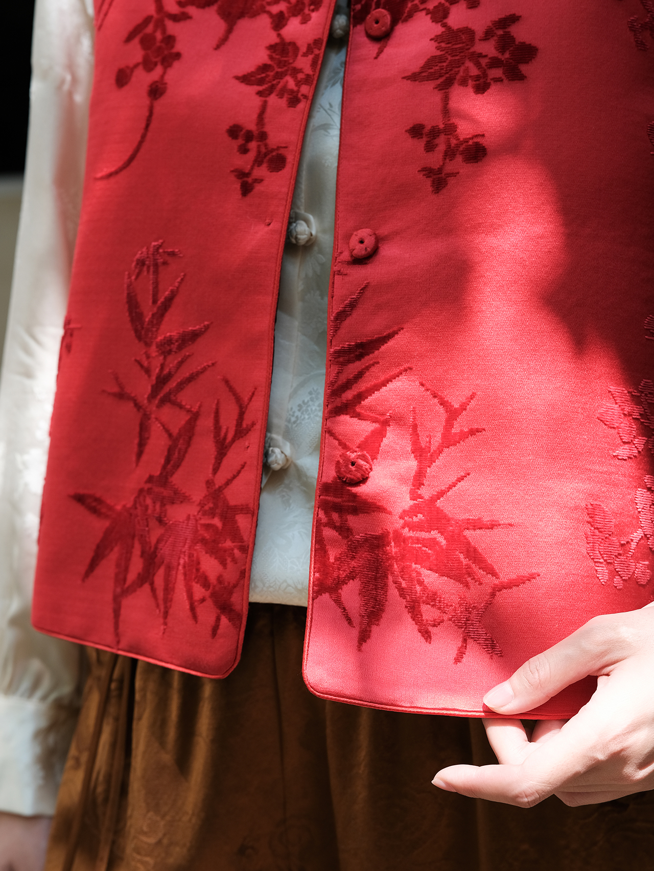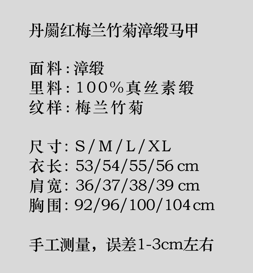 盛唐牡丹| 丹罽红梅兰竹菊漳缎马甲 (里素缎)