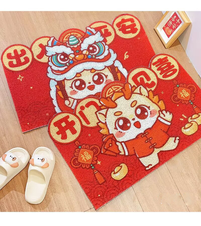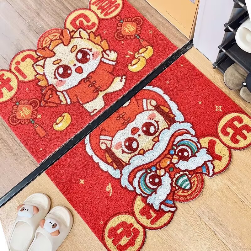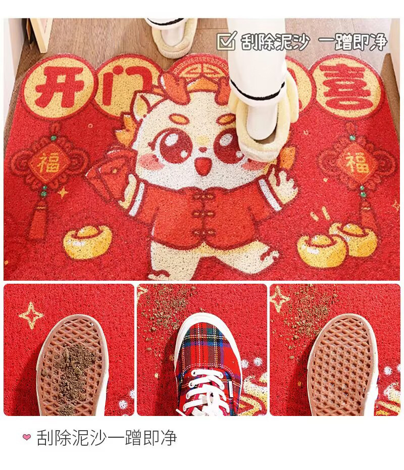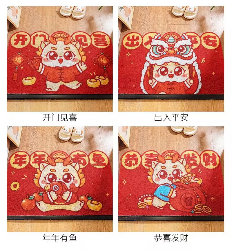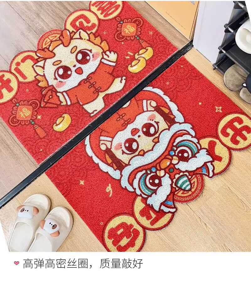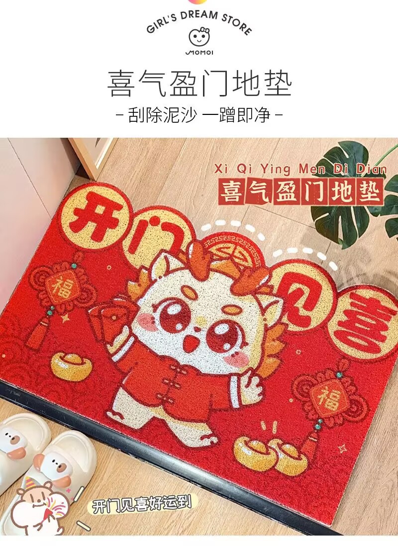 【开门见喜好运到❗️喜气盈门地垫】新年马年卡通红色入户进门脚垫家用玄关门垫耐脏刮泥剪裁丝圈地垫