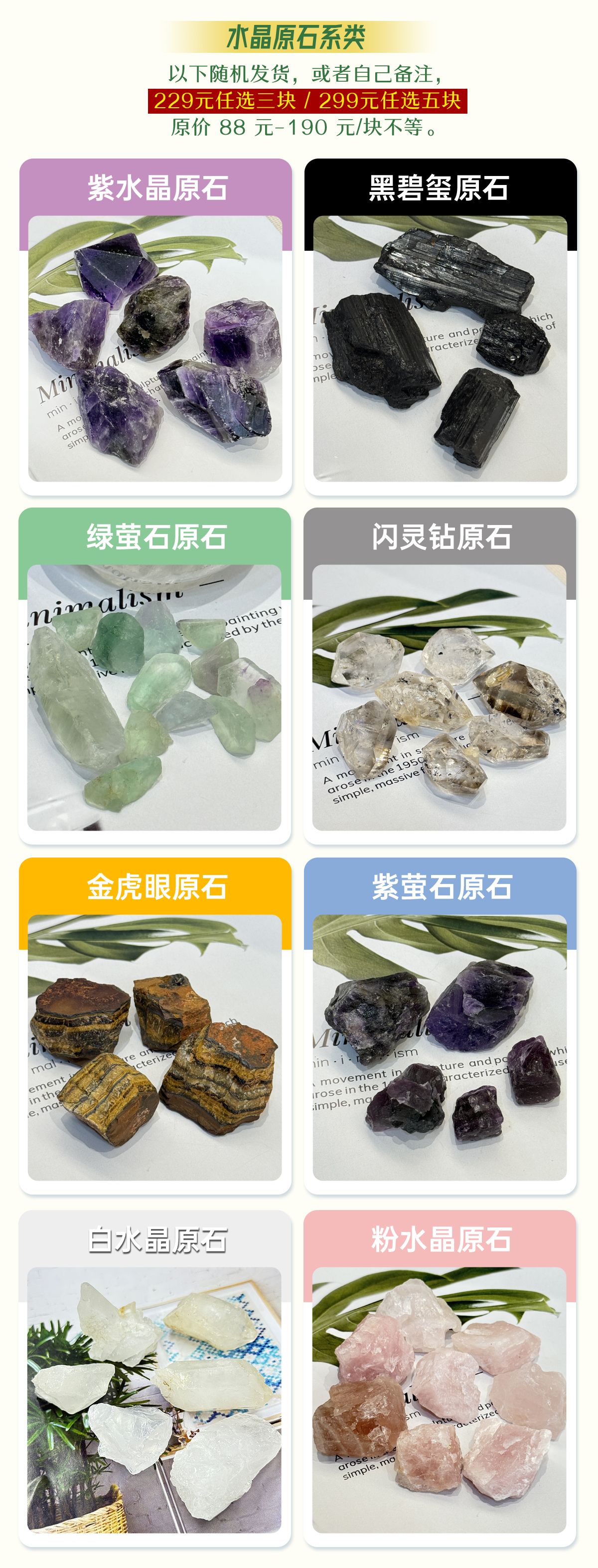 原石系列粉水晶紫水晶紫萤石绿萤石白水晶黑碧玺金虎眼原石