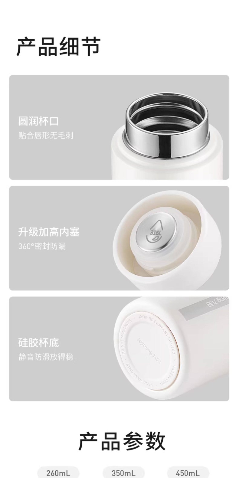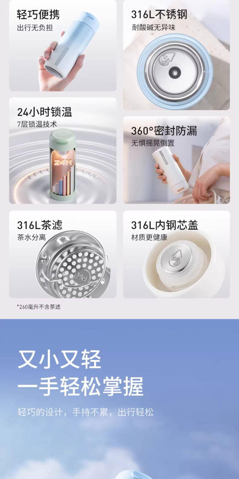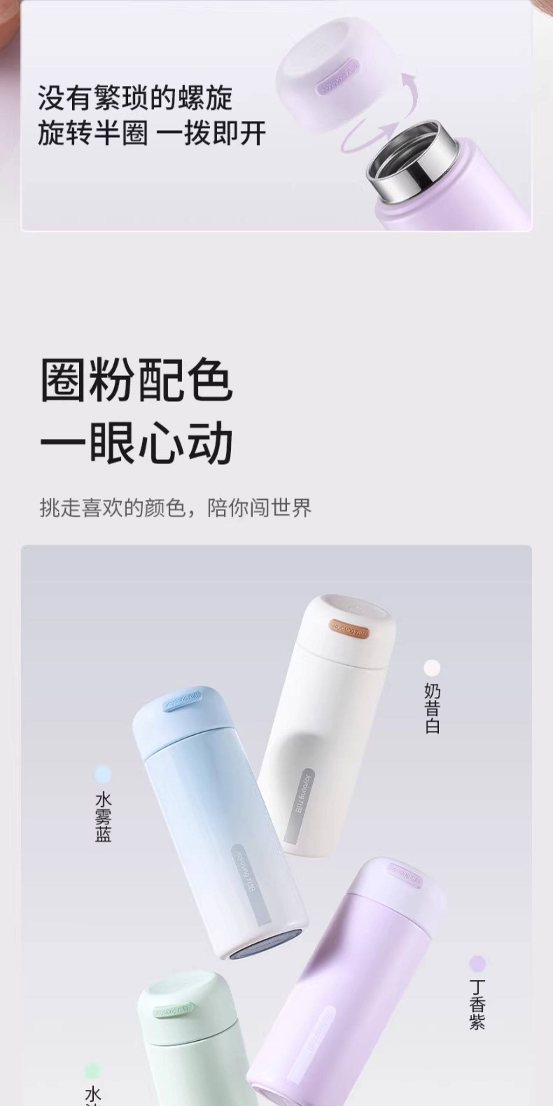 九阳轻羽LITE保温杯口袋杯316L不锈钢轻巧便携男女学生儿童喝水杯