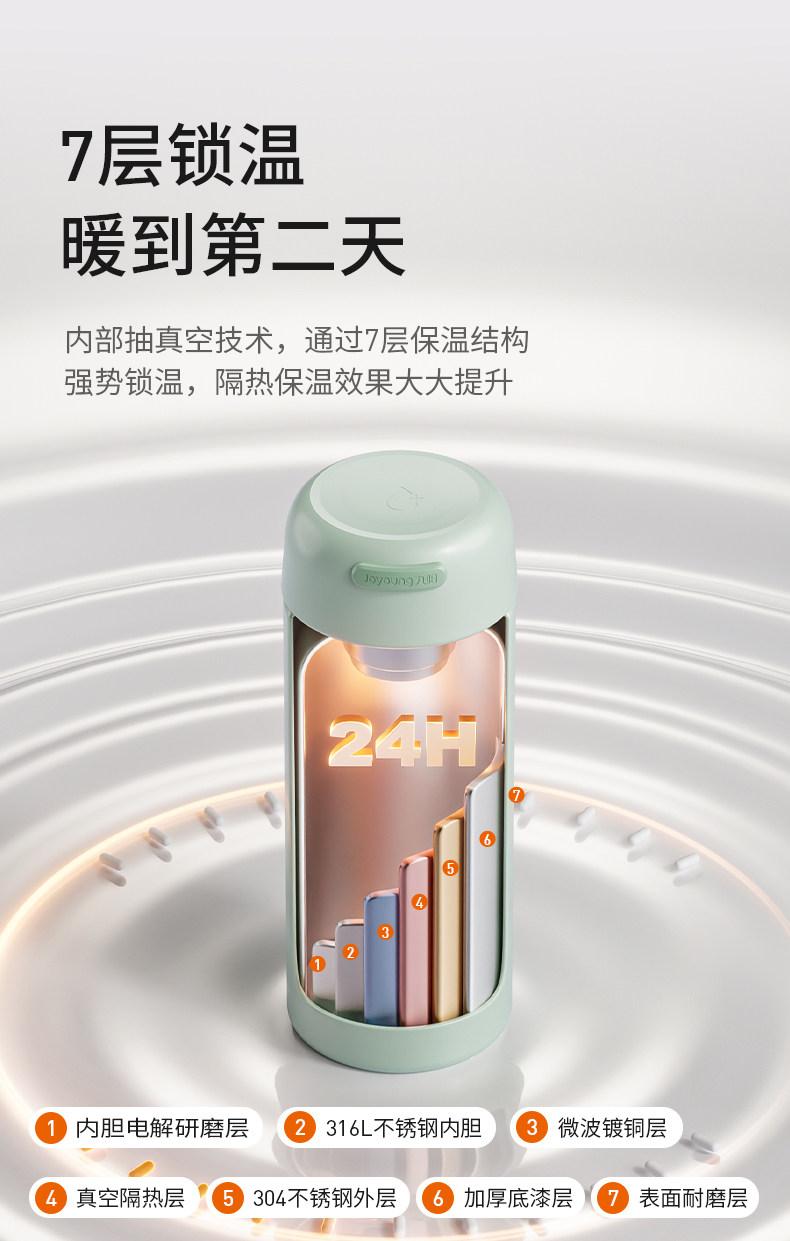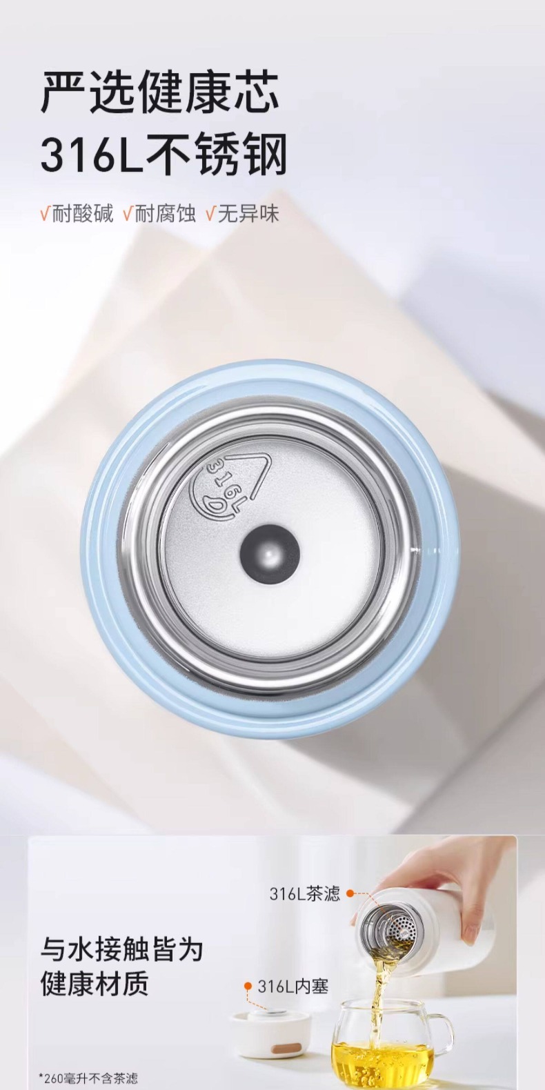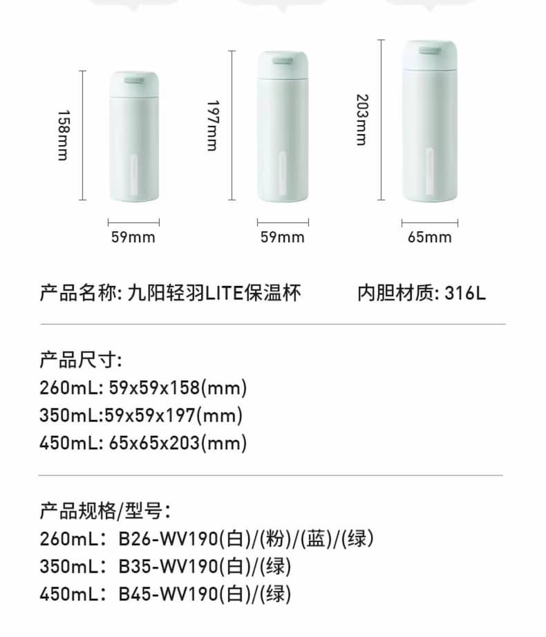 九阳轻羽LITE保温杯口袋杯316L不锈钢轻巧便携男女学生儿童喝水杯