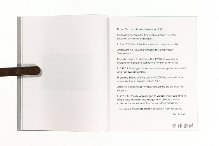 Live in the house and it will not fall down is a gallery of fragments, a collection of memories, the story of one and more people, of a house, of a city. Compiled by Italian artists and recipients of the first Lewis Baltz Research Fund, Alessandro Laita and Chiaralice Rizzi, the book was built from an archive of images collected over four decades by the late Venetian artist Bruno Rizzi, who died in 2004. Spending long days in the artist’s Venice studio, Laita and Rizzi intervened in the delicate geology that underlies such piles of papers, postcards and photographs sedimented over the years. Set free from their previous binds and rebound in a new order, the images serve as traces of the artist's life in sync with the gentle currents of the floating city.