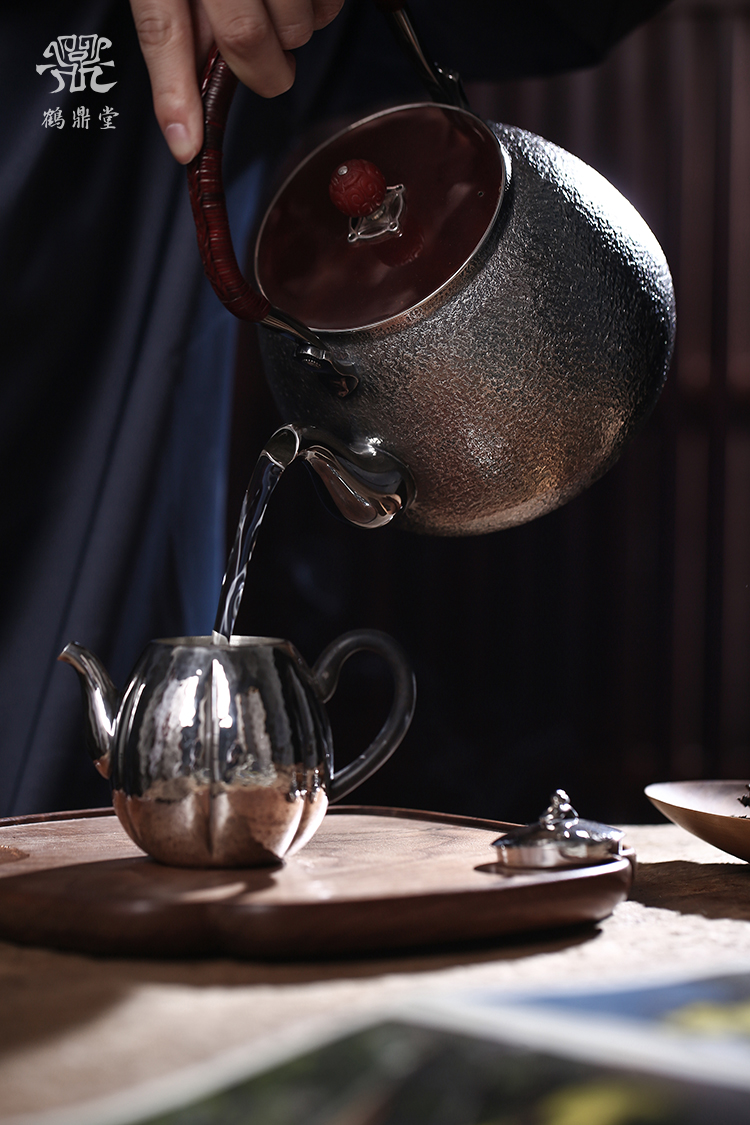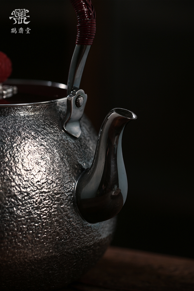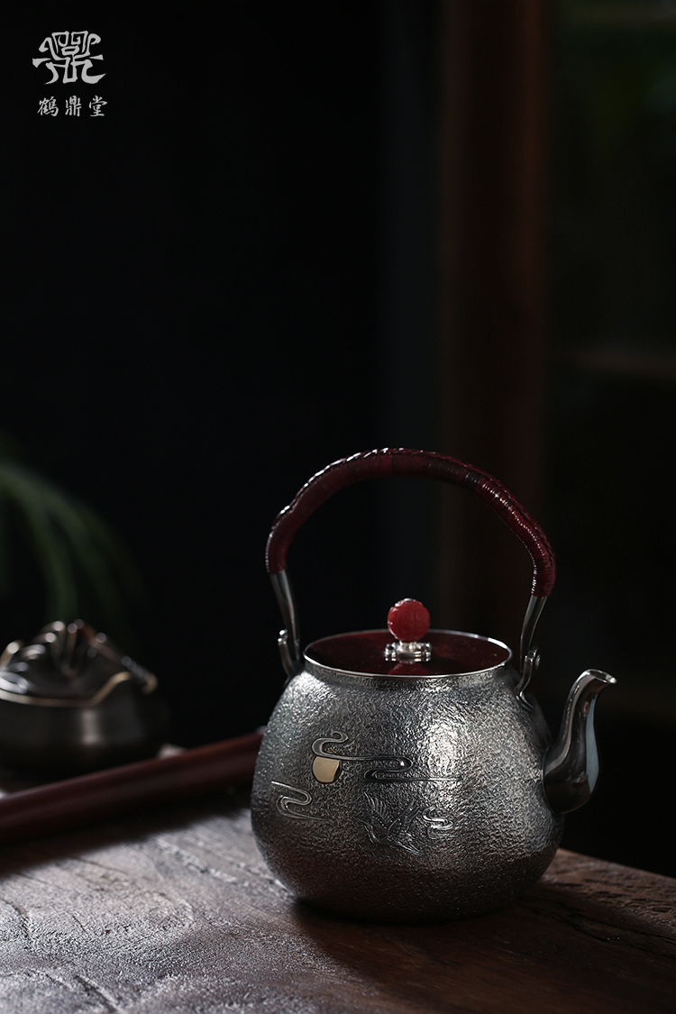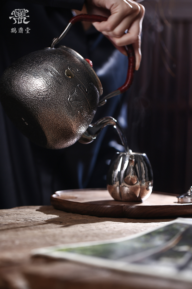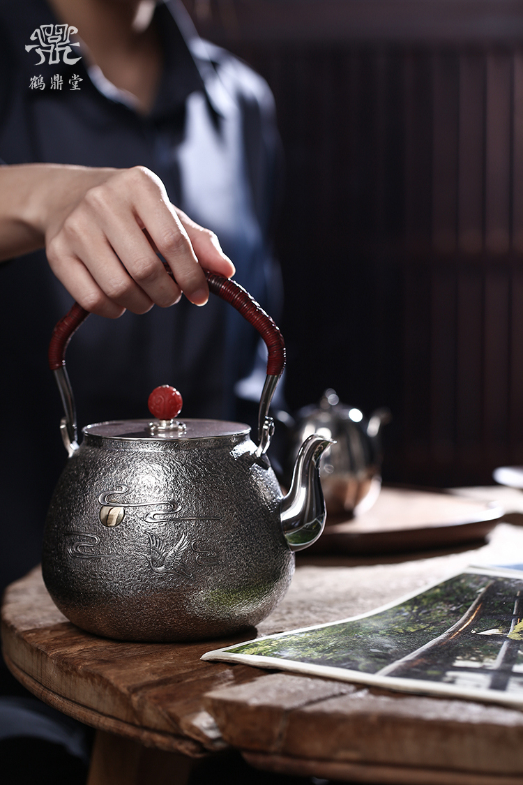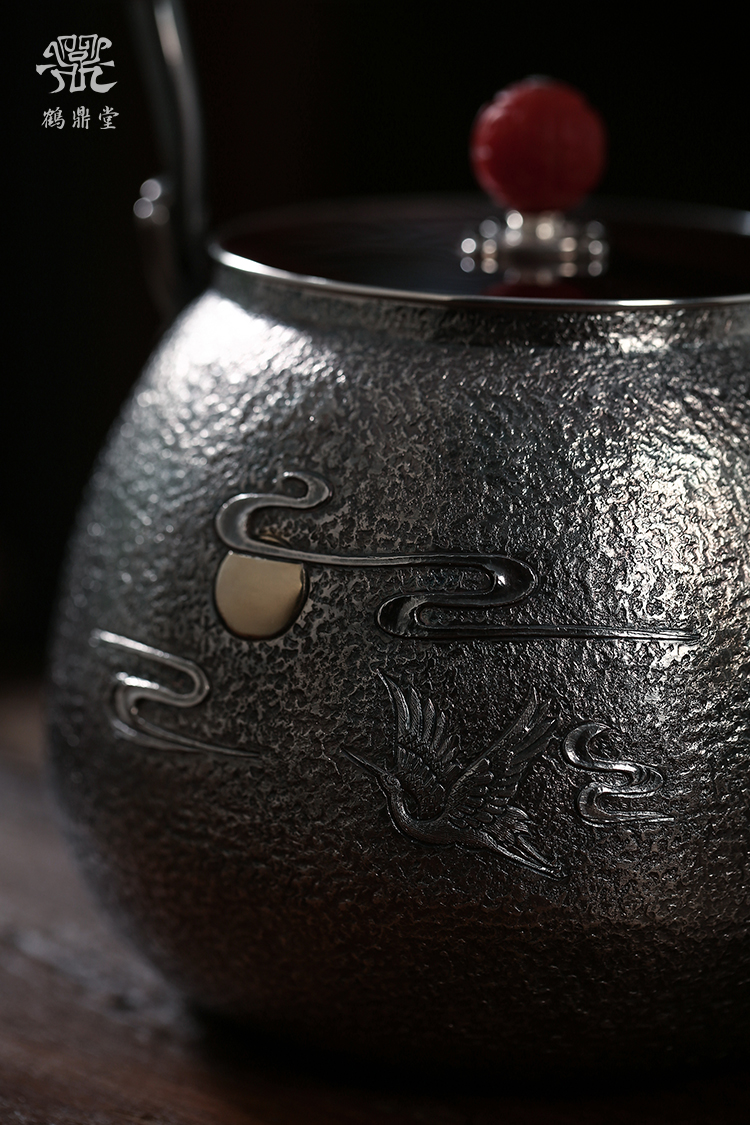 鹤鼎堂银壶闻天系列泉水汤沸錾刻仙鹤奔月(银色)(缺货)