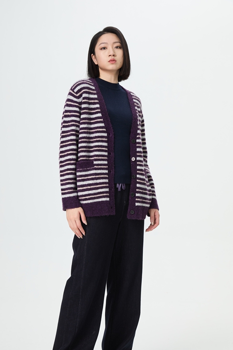 【自留款好看的】水淼2025冬新款时尚休闲大气显瘦百搭毛织条纹外套1294