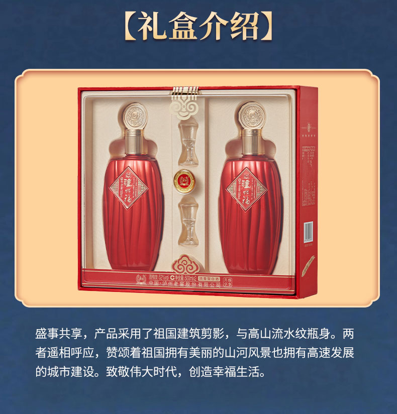 【钜惠优惠组合】55度泸州老窖头曲富贵吉祥礼盒(625ml*2瓶)*1盒+泸州福酒盛事共享52%vol( 500ml*2瓶)*3盒 泸州老窖官方旗舰店