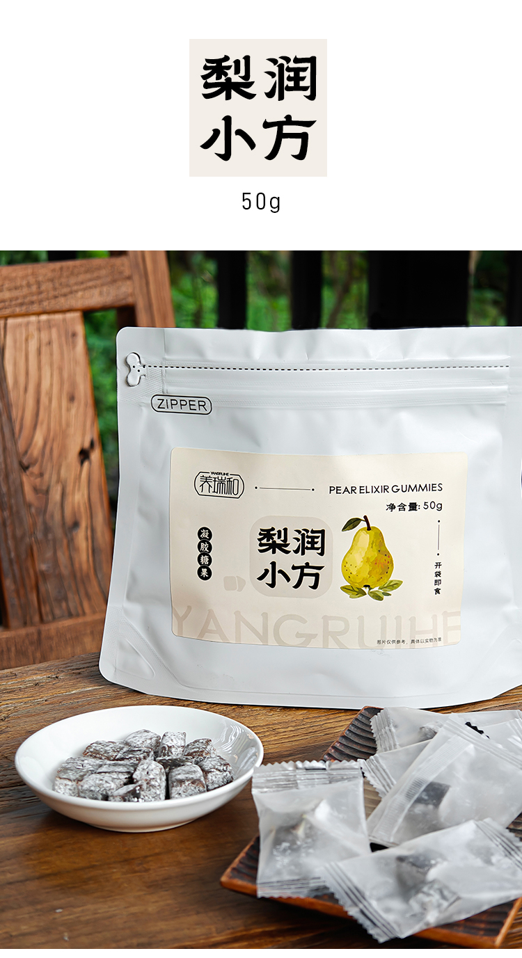 养瑞和丨梨润小方50g·鲜梨熬制·配料只有梨·黄老冰糖·维C无香精色素·不齁甜·独立小包装水果软糖