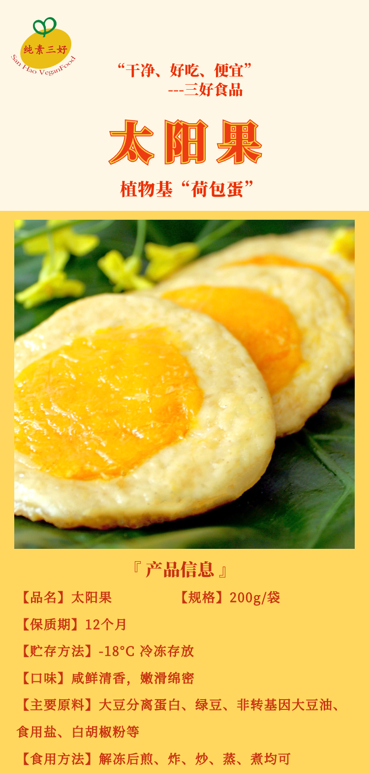 【特惠9折】三好食品 太阳果 素荷包蛋 素鸡蛋 200g*10袋【4个/袋】