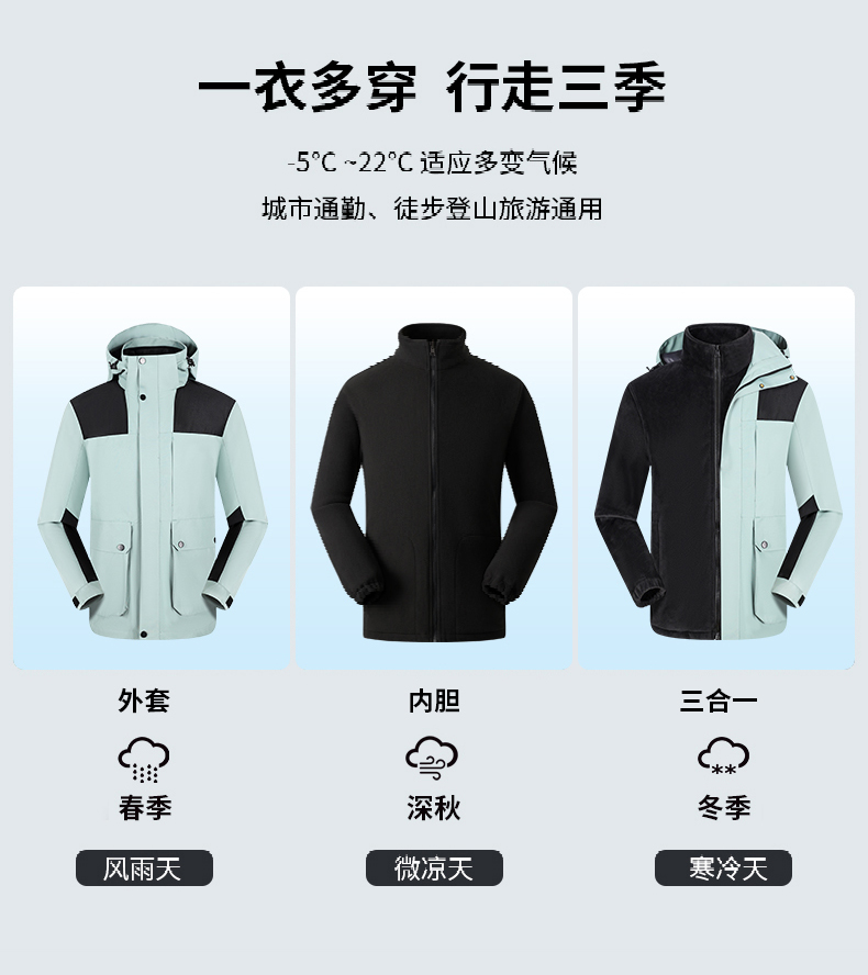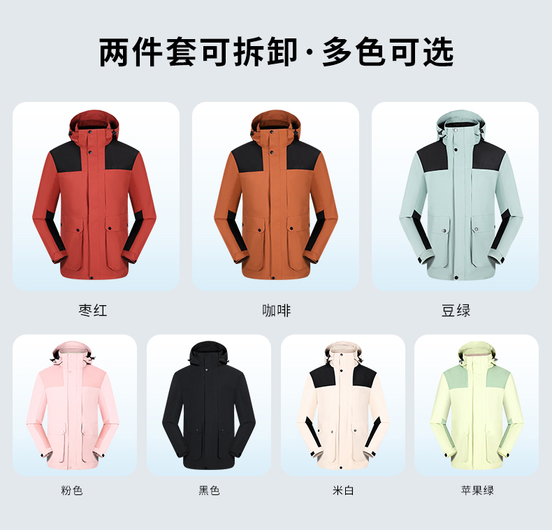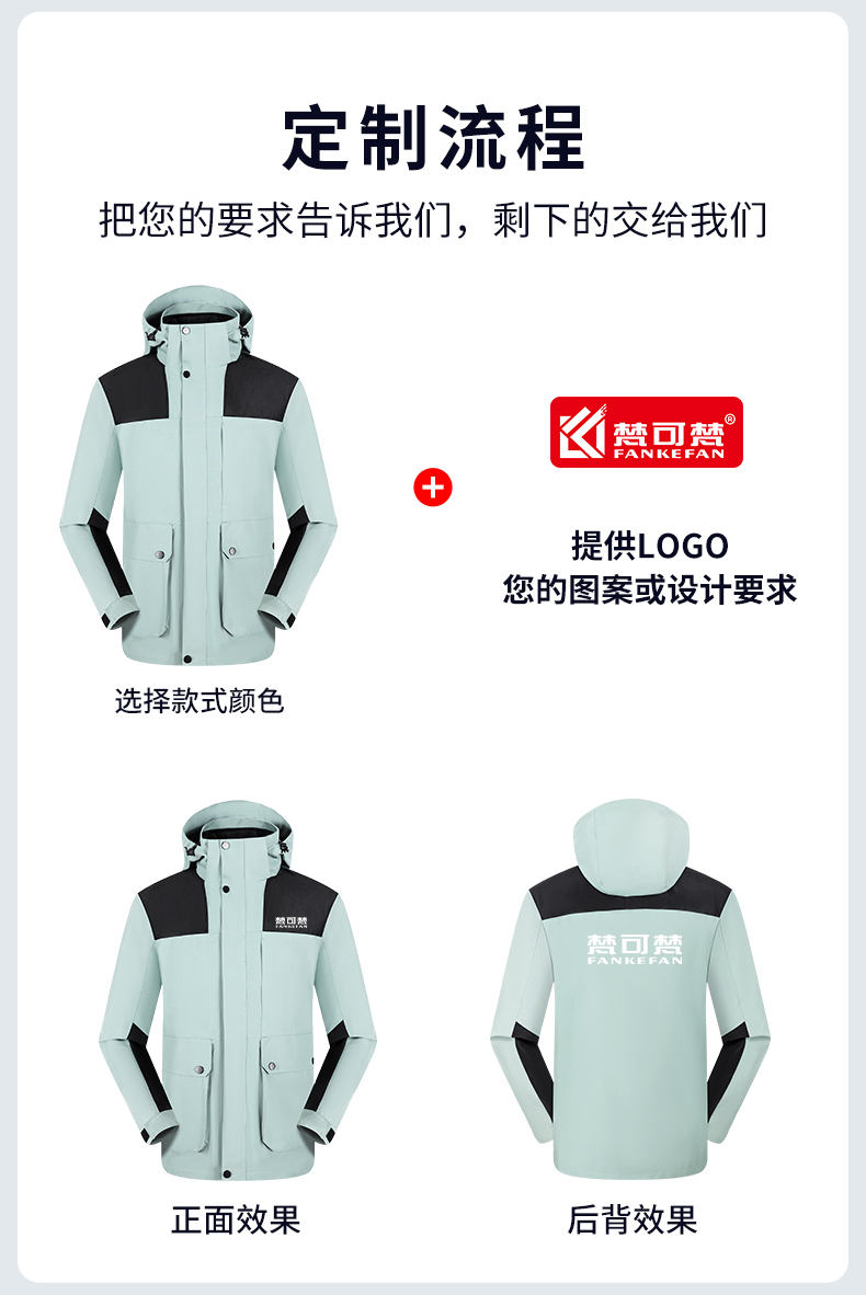 冲锋衣工作服定制印logo刺绣工装可拆卸加厚两件套防风外套冬装