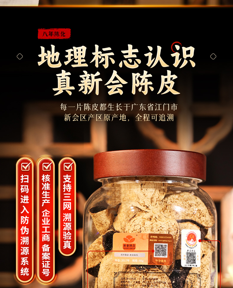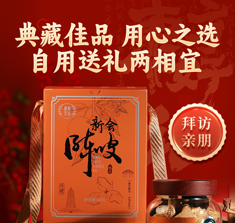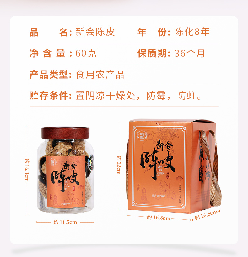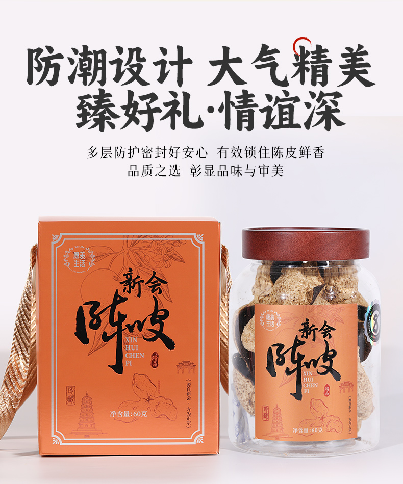 康美生活新会陈皮60g 陈化8年大红皮配礼盒 地理标志防伪溯源