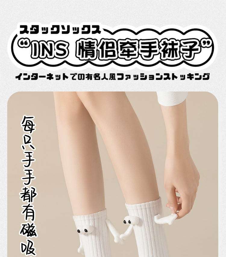 【碰到即可牵手❗️情侣牵手袜】柔软舒适,3D,男童女童闺蜜情侣皆可穿,牵手袜子情侣磁吸拉手可爱牵脚袜夏季薄款抖音棉吸汗吸铁石中筒袜父亲节礼物新年礼盒年货礼盒