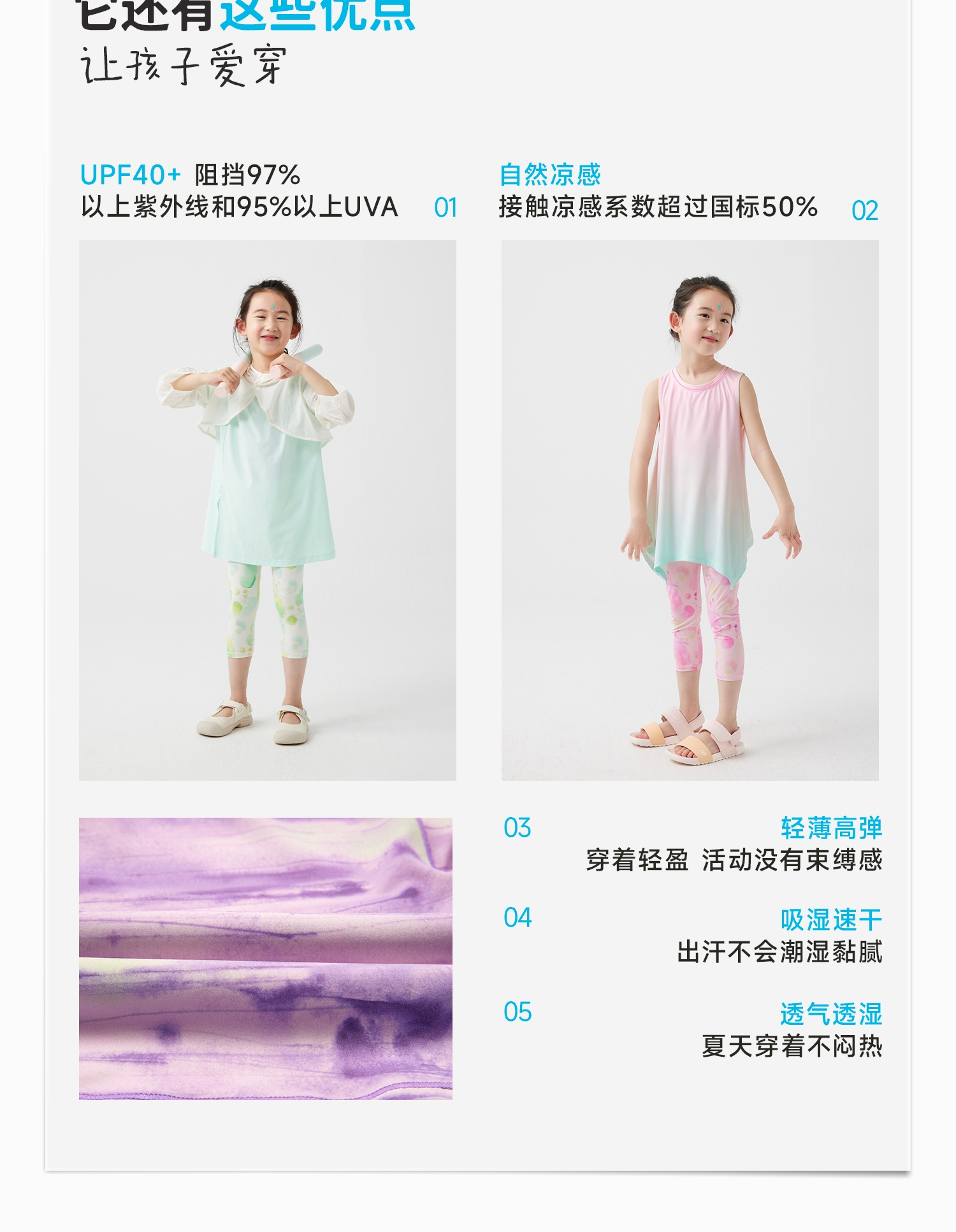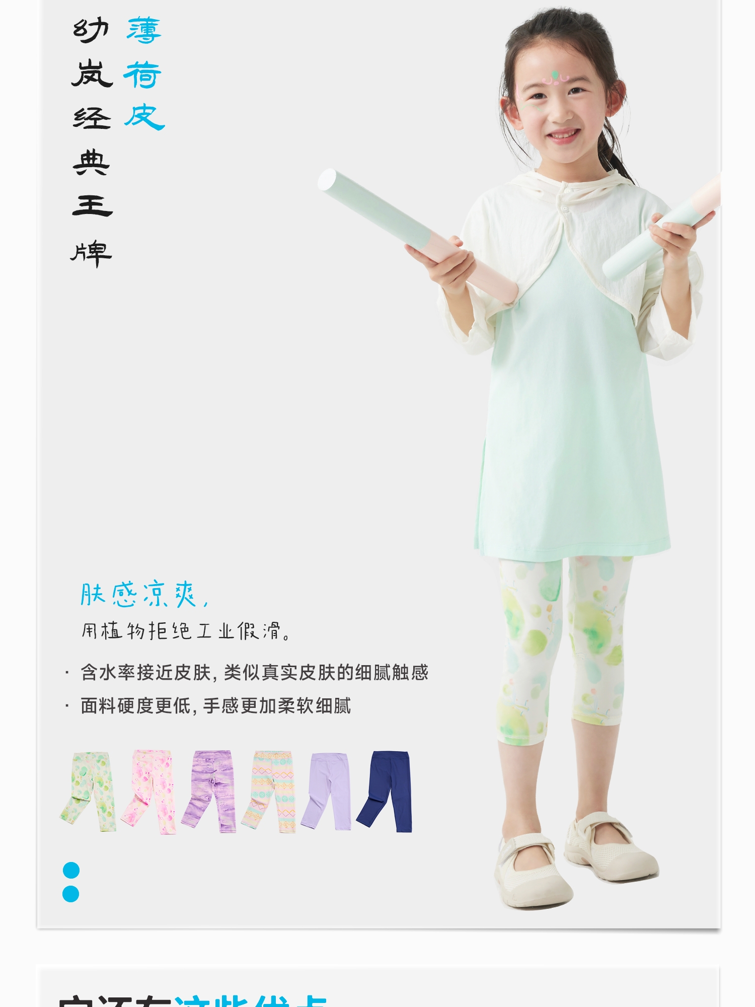 【好友特惠】幼岚「薄荷皮」凉感透气防晒七分裤24夏新儿童打底裤ZY