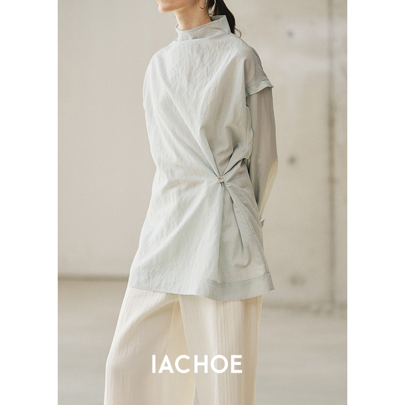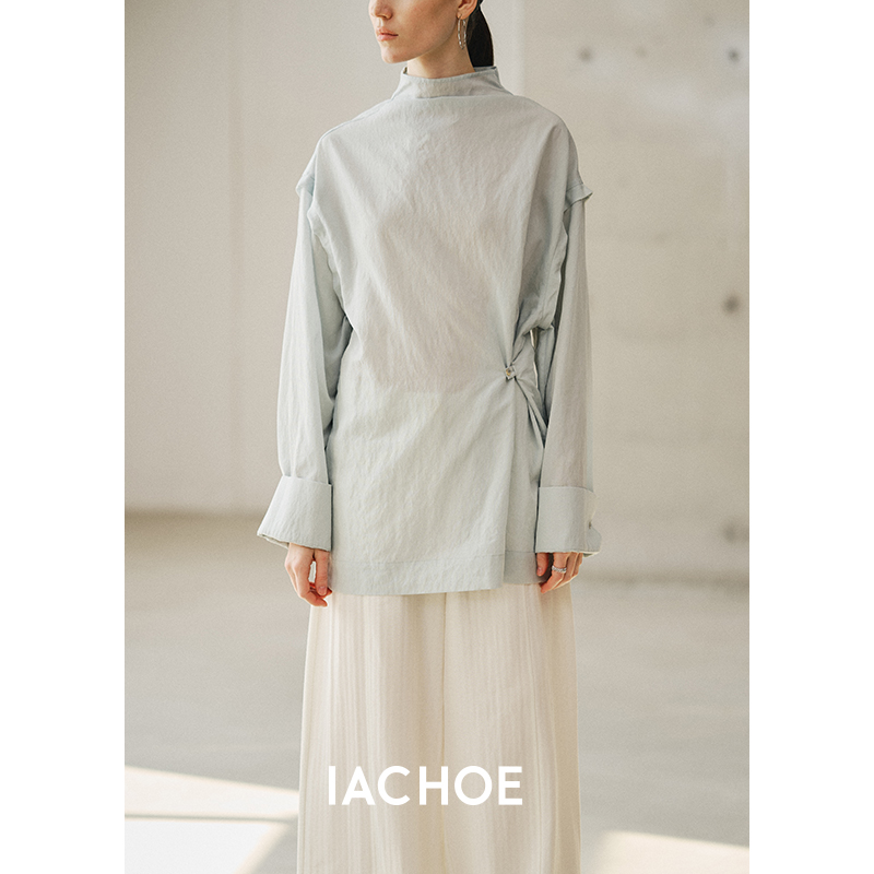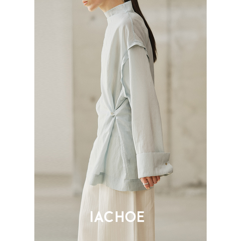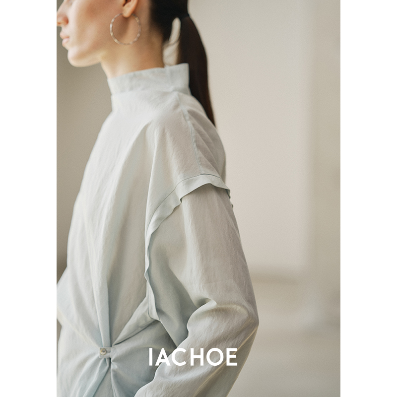 棉仓3571504002-IACHOE蓝色设计师风天丝长袖衬衫小众