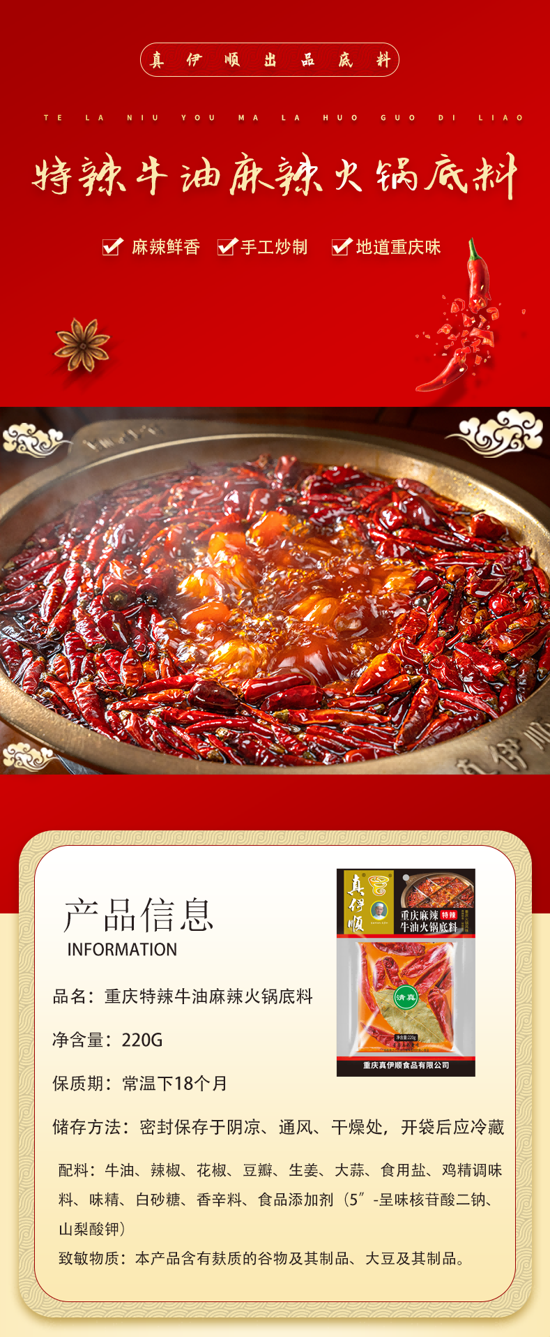 真伊顺 清真特辣牛油麻辣火锅底料 220克