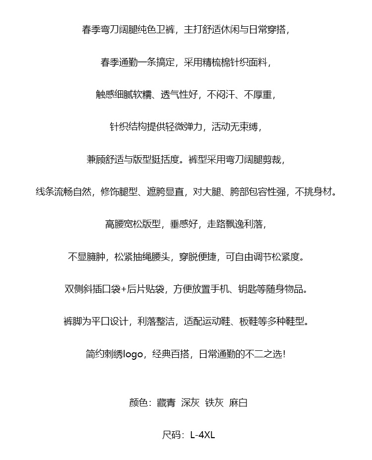 【sssp1】春款女士休闲弯刀阔腿纯色卫裤!!