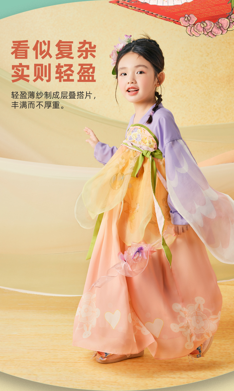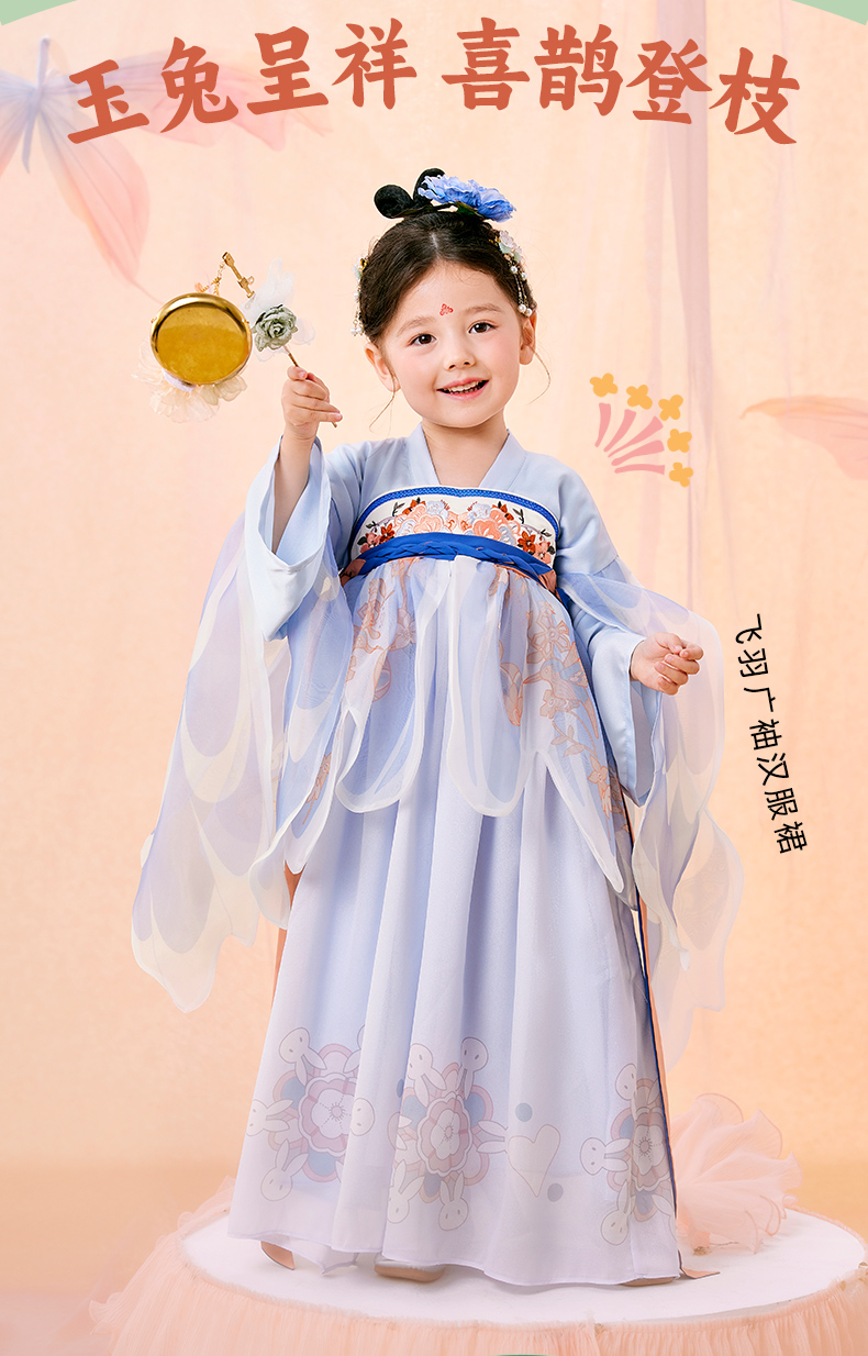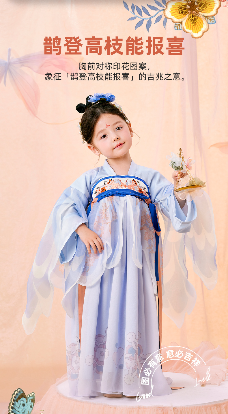 年衣飞羽广袖女童汉服春秋款儿童改良唐装襦裙原创古装演出服仙飞羽广袖襦裙