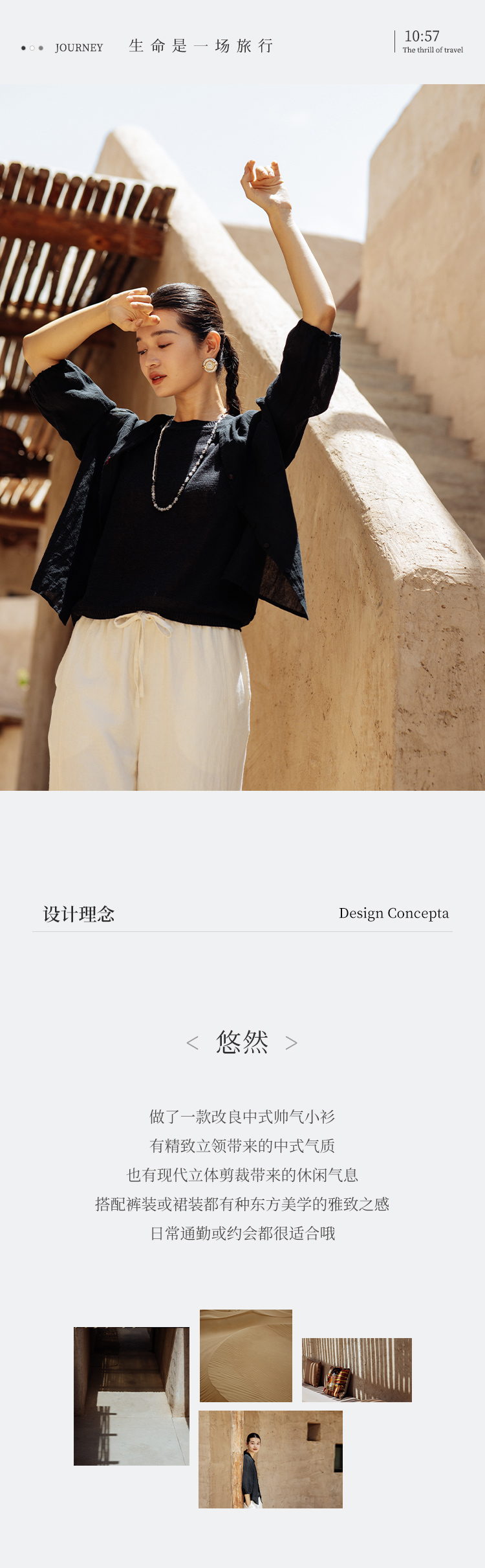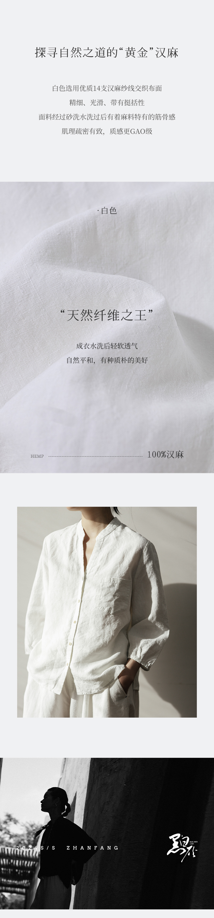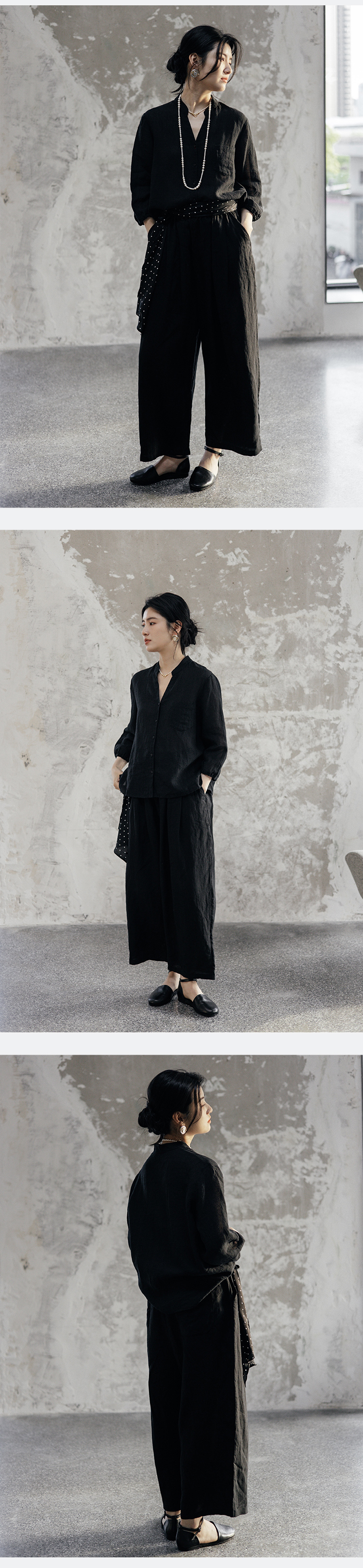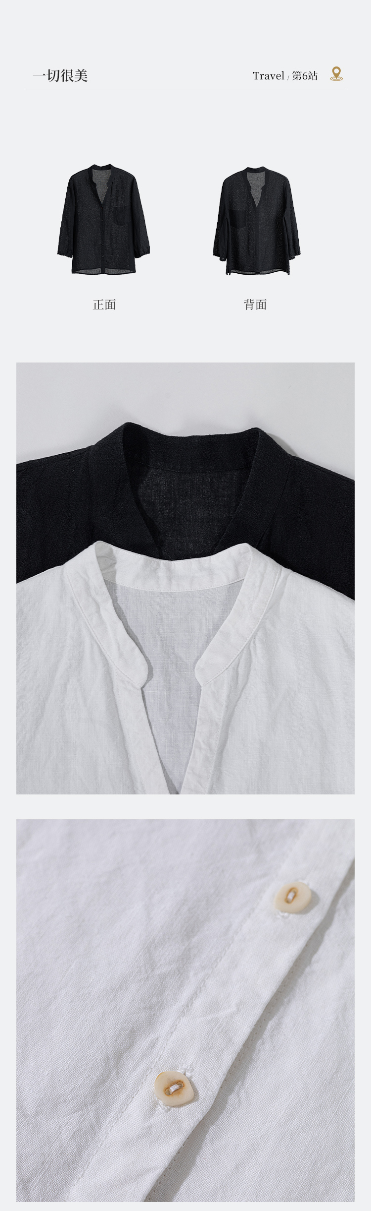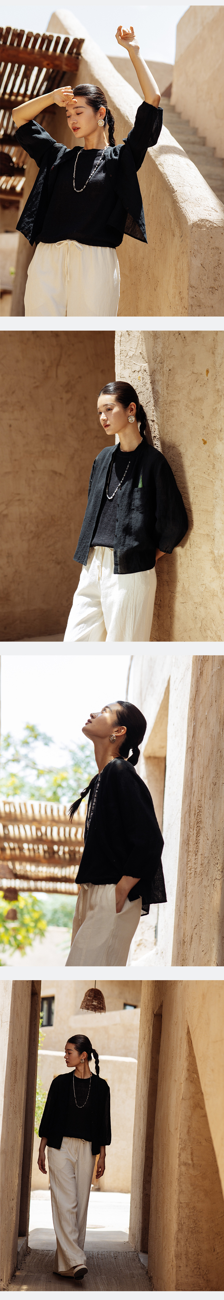 绽放旅行女装462朵【黑白灰系列】轻薄亚麻褶皱肌理感中式小衫