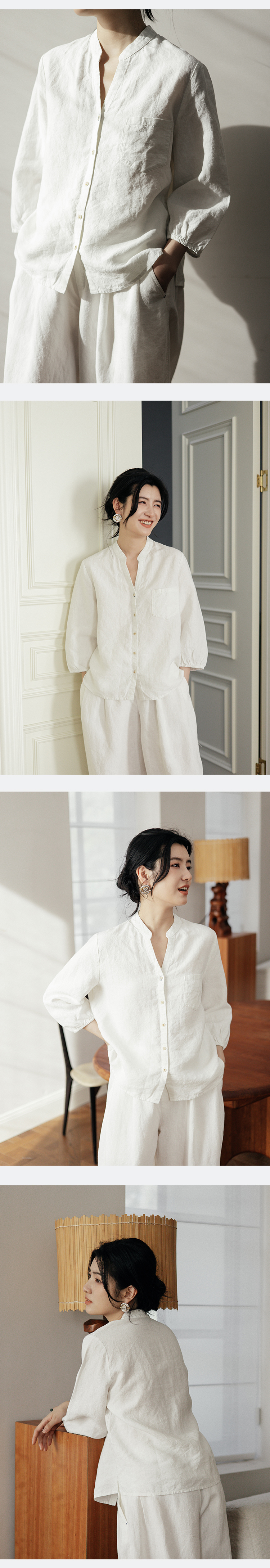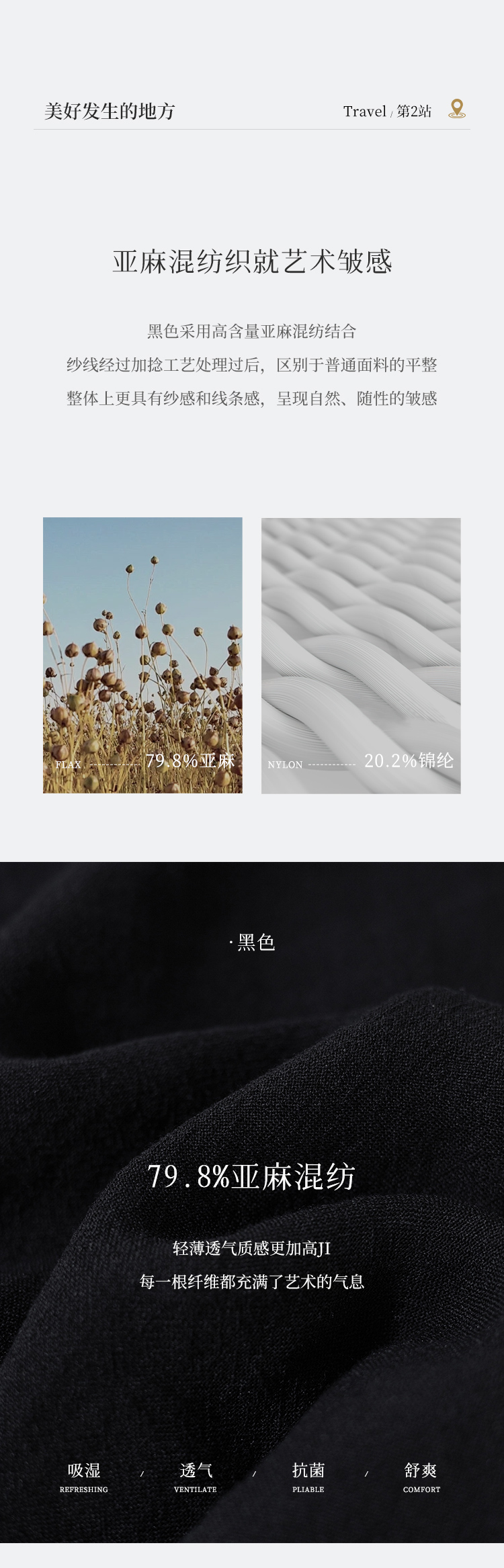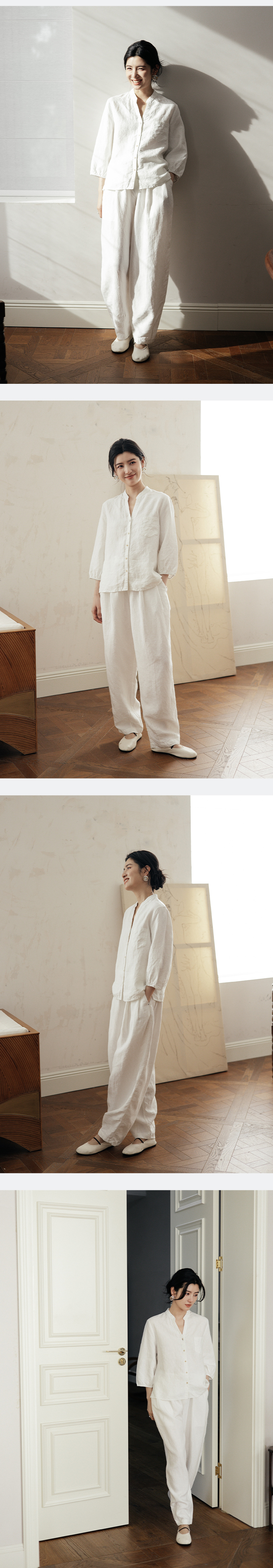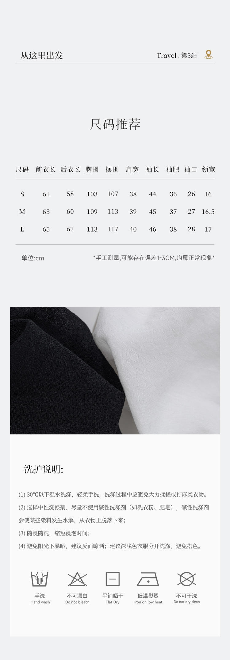 绽放旅行女装462朵【黑白灰系列】轻薄亚麻褶皱肌理感中式小衫