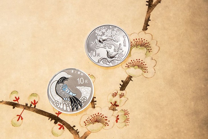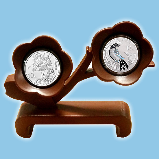 该主题含30克银币2枚,取“双喜临门”之意。古人以喜鹊作为喜的象征,梅花五片花瓣象征着幸福、快乐、顺利、长寿、和平,还是福、禄、寿、喜、财的表示。
