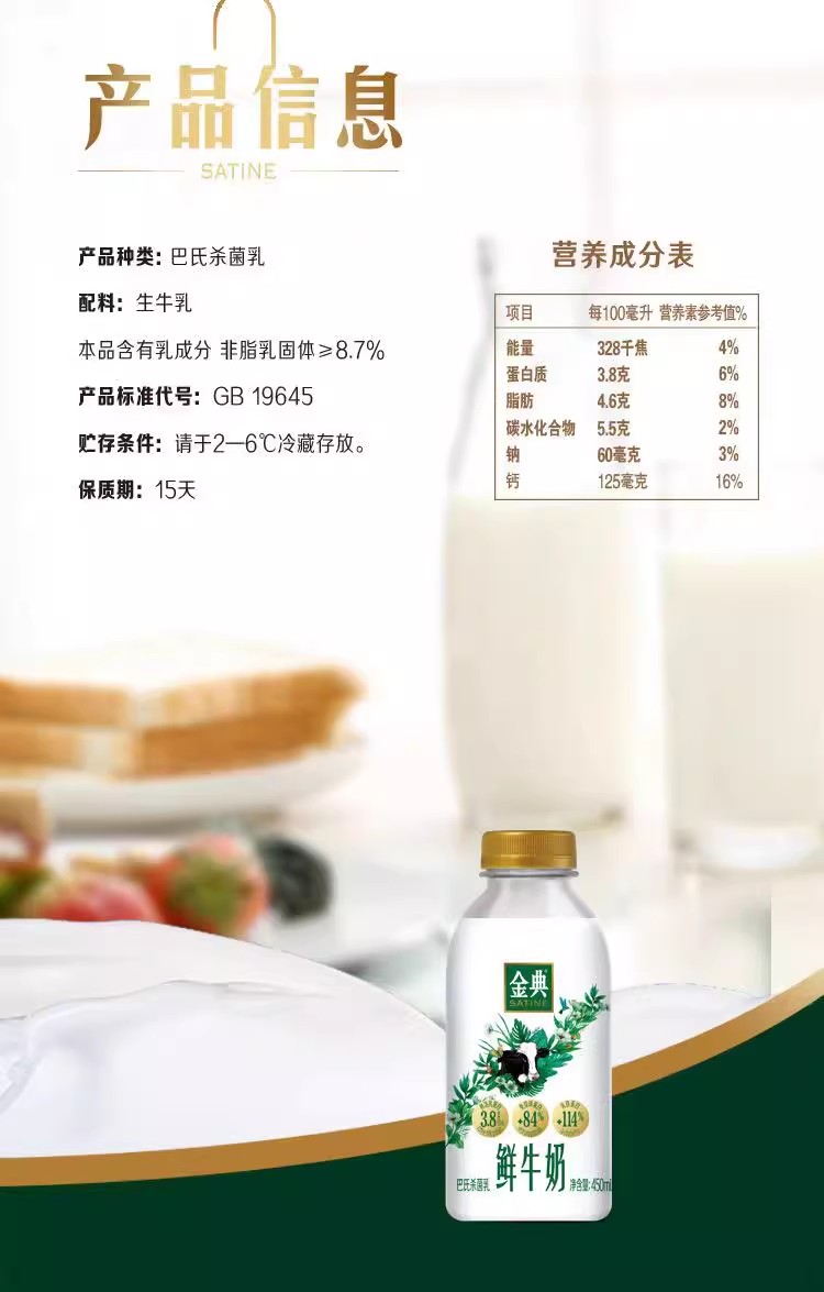 金典鲜牛奶450ml/瓶