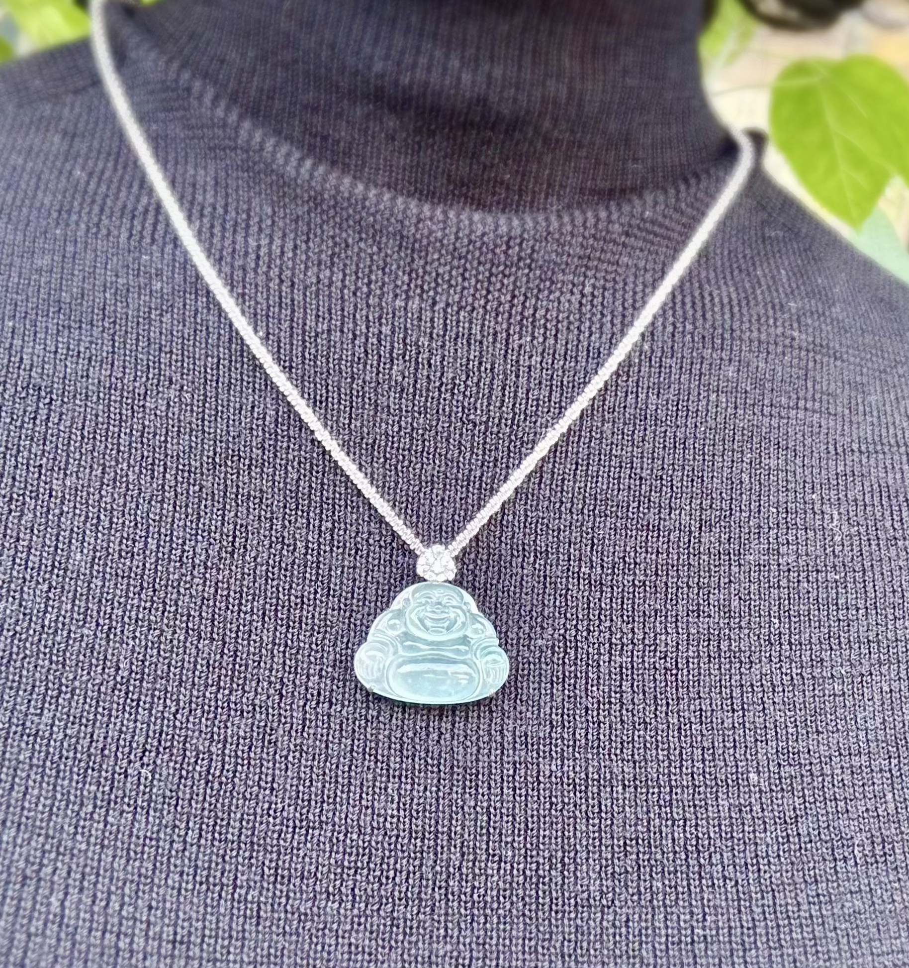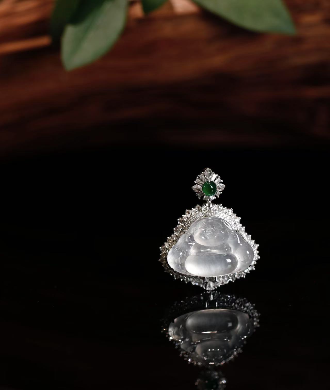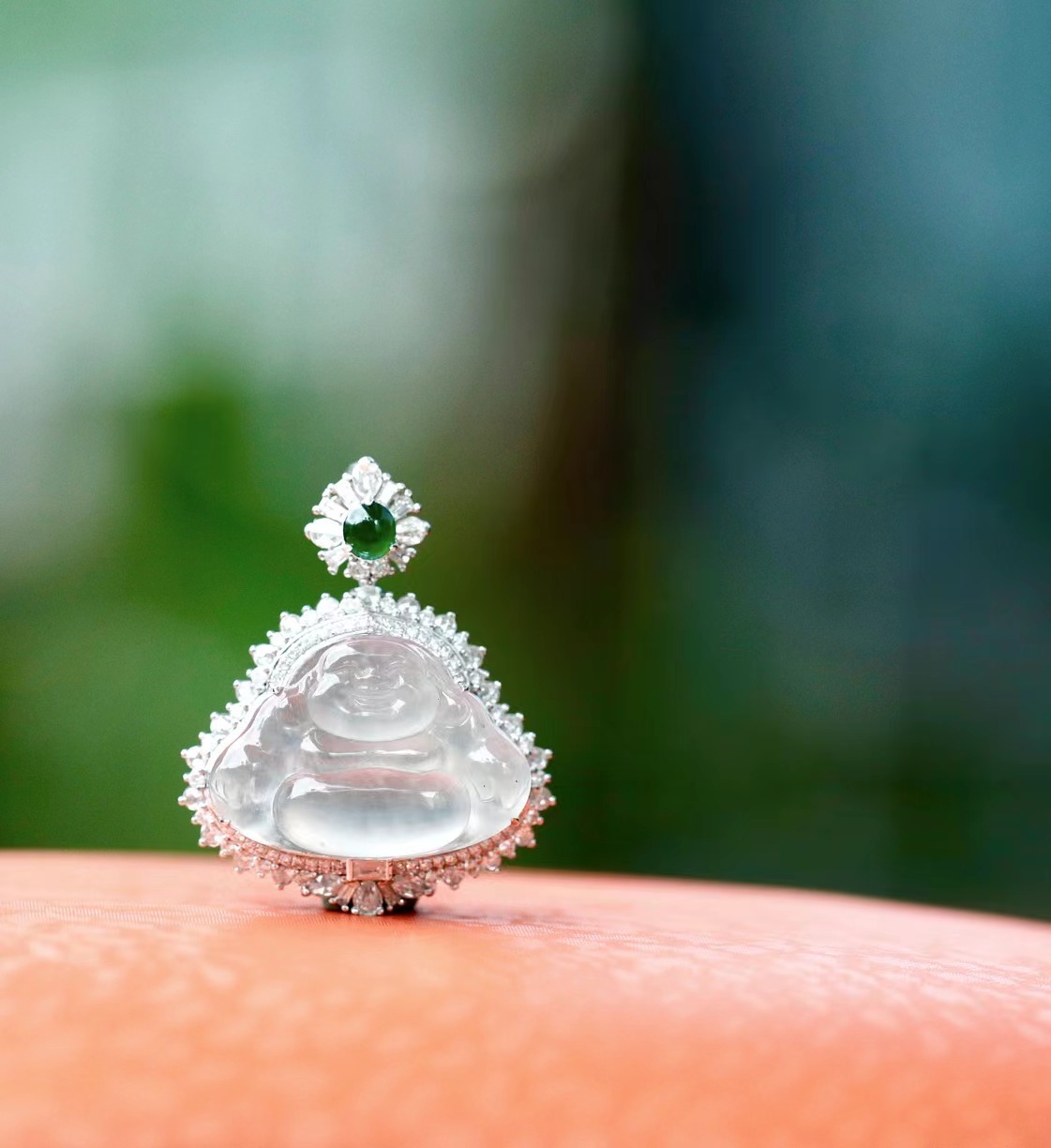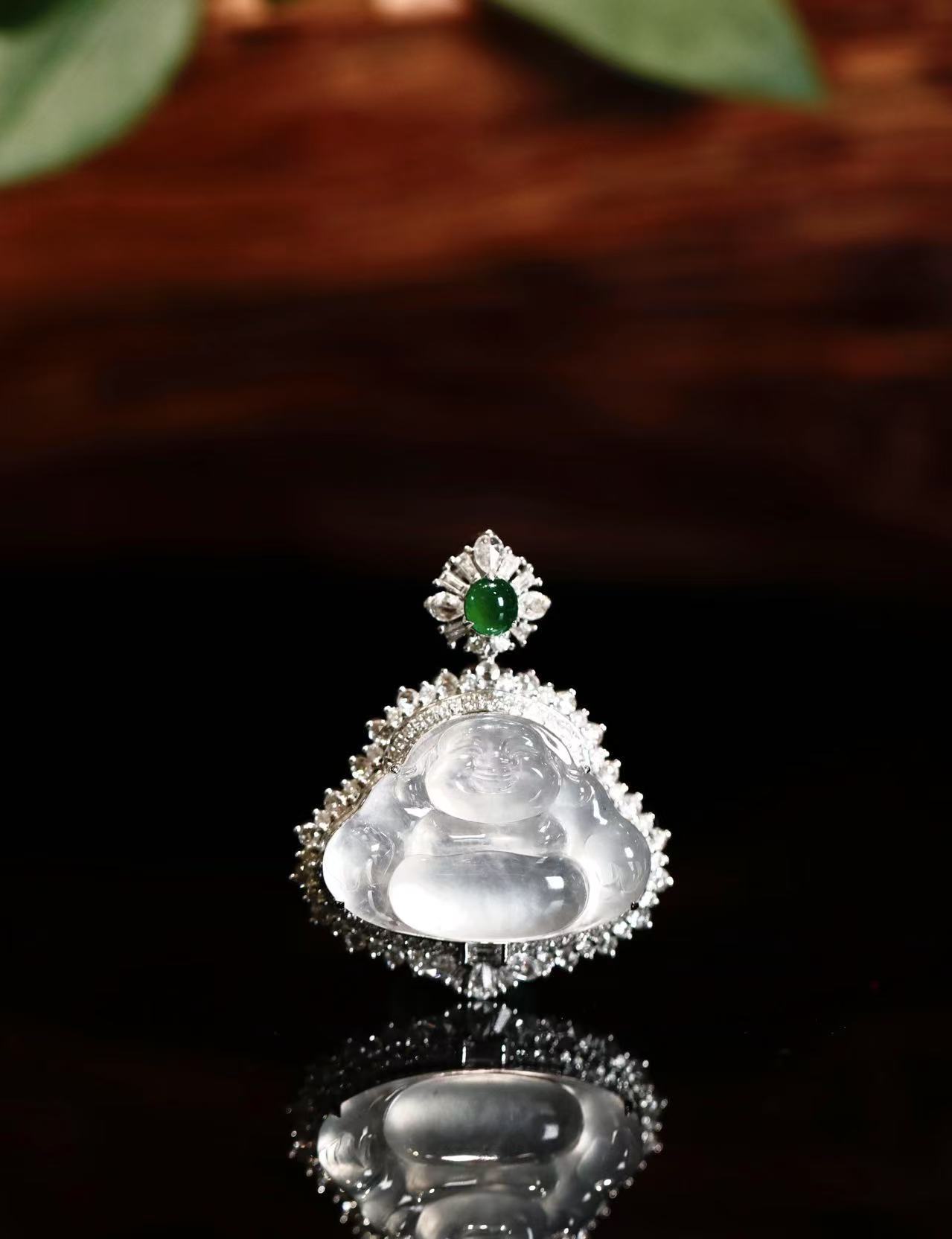 在中国传统文化里,佛公寓意着福气与庇佑,佩戴这尊白冰翡翠佛公,就如同将福运与安宁紧紧握在手中,无论风雨如何,它都能默默守护,成为你生活里最安心的依靠 。