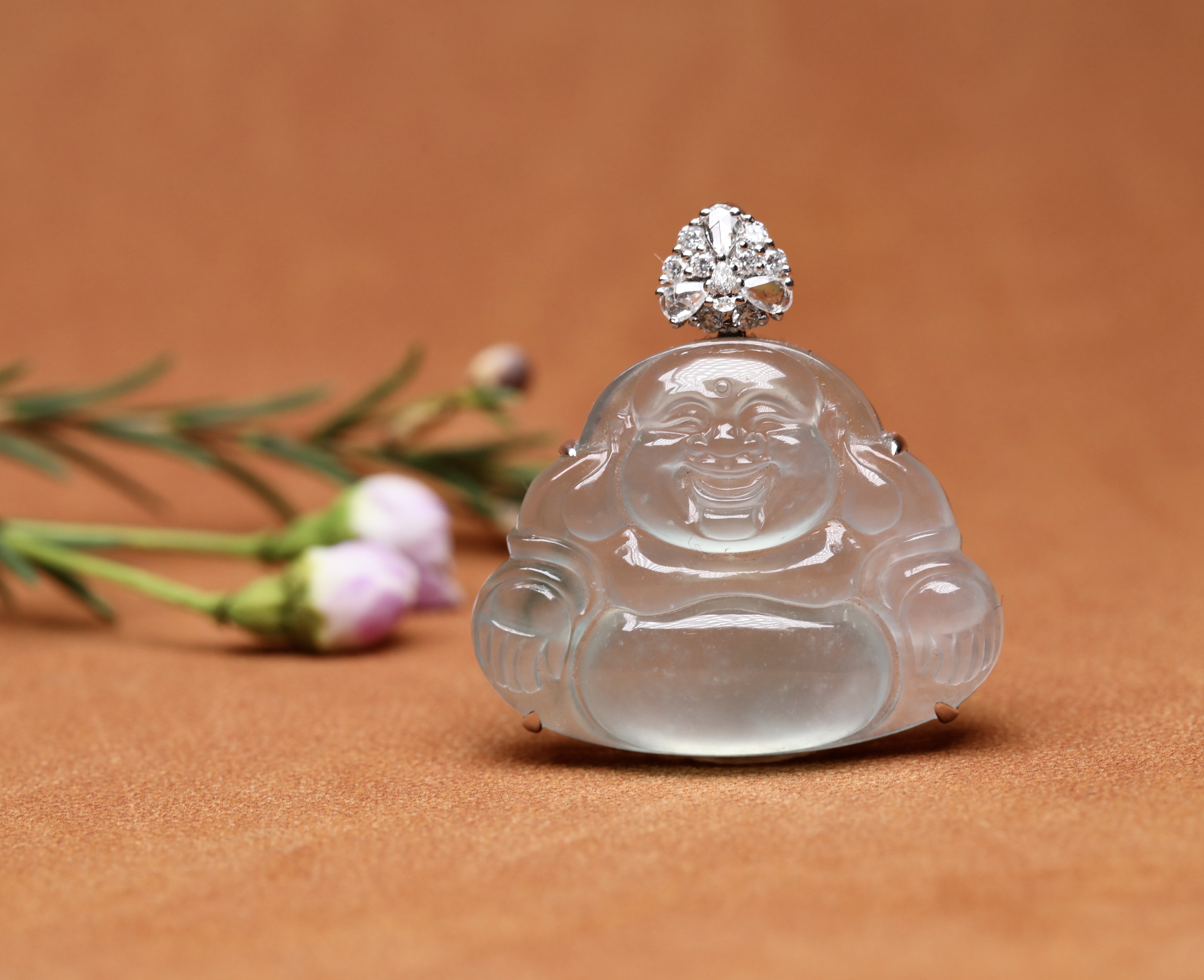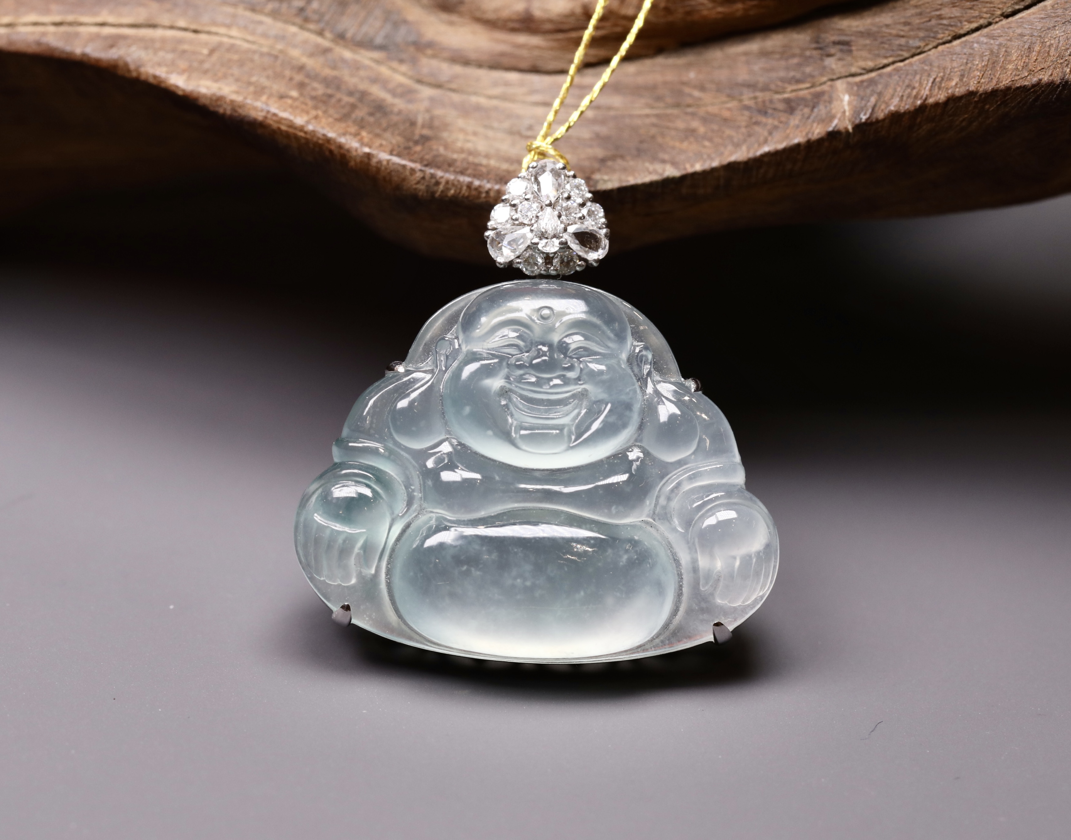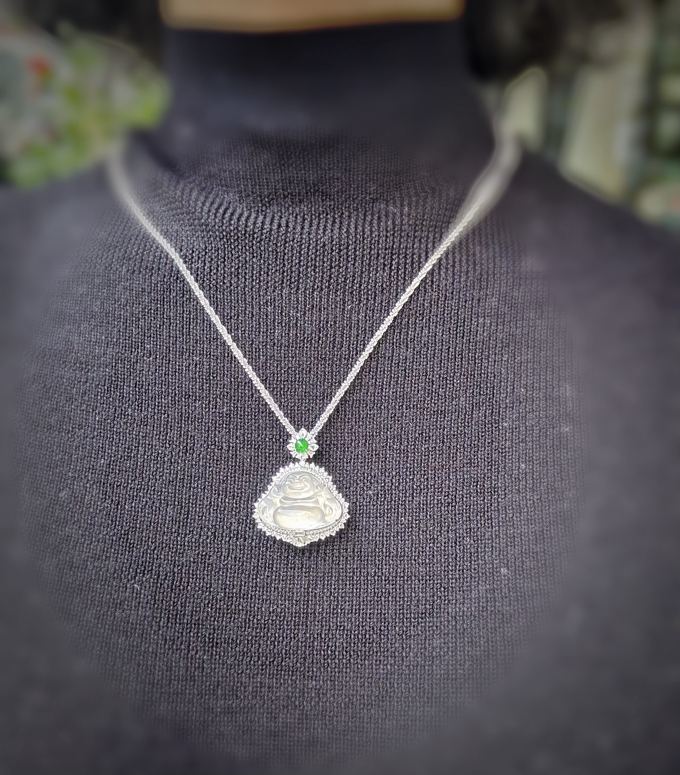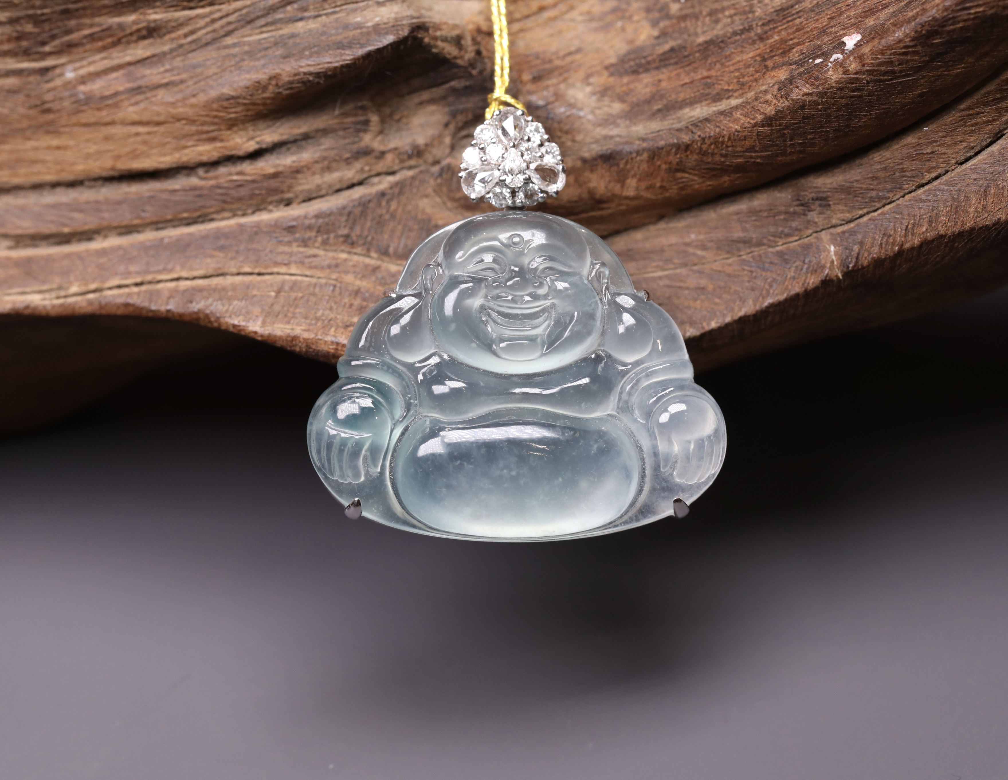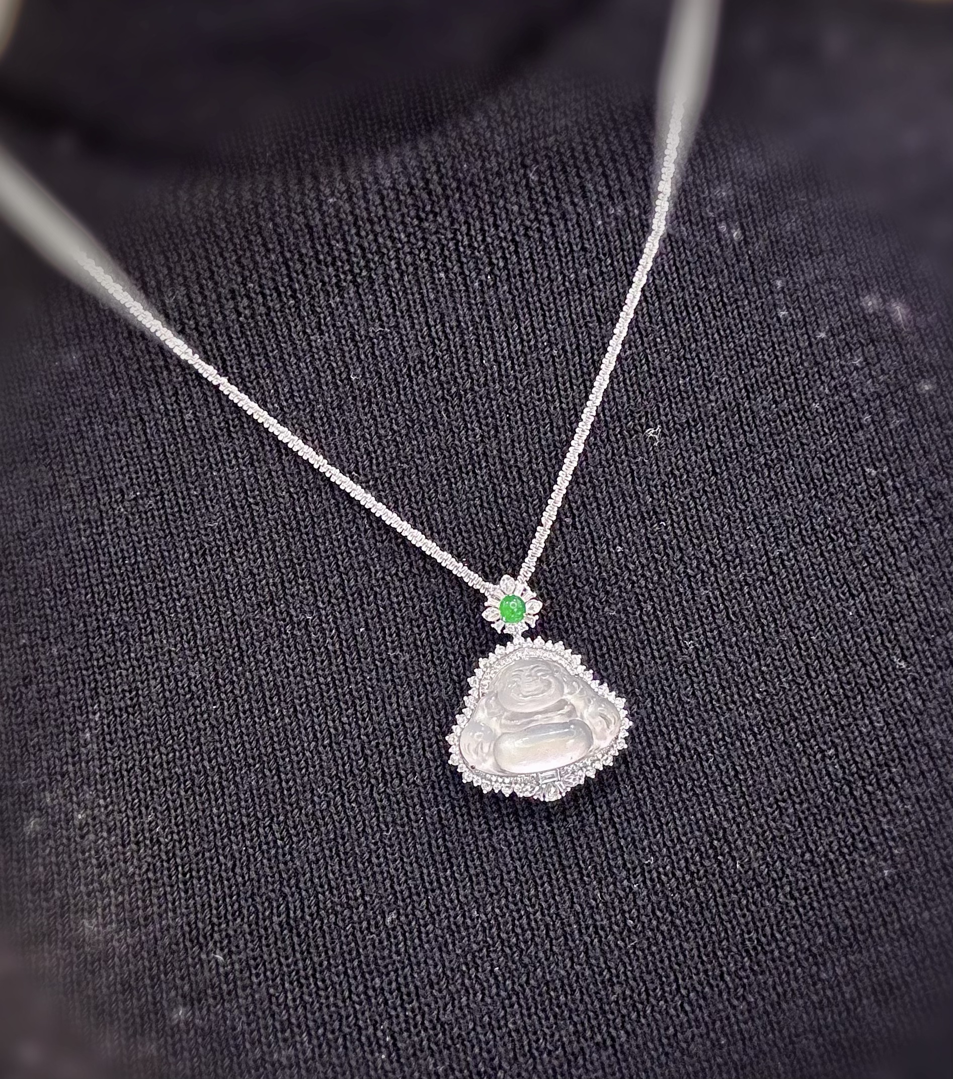 在中国传统文化里,佛公寓意着福气与庇佑,佩戴这尊白冰翡翠佛公,就如同将福运与安宁紧紧握在手中,无论风雨如何,它都能默默守护,成为你生活里最安心的依靠 。
