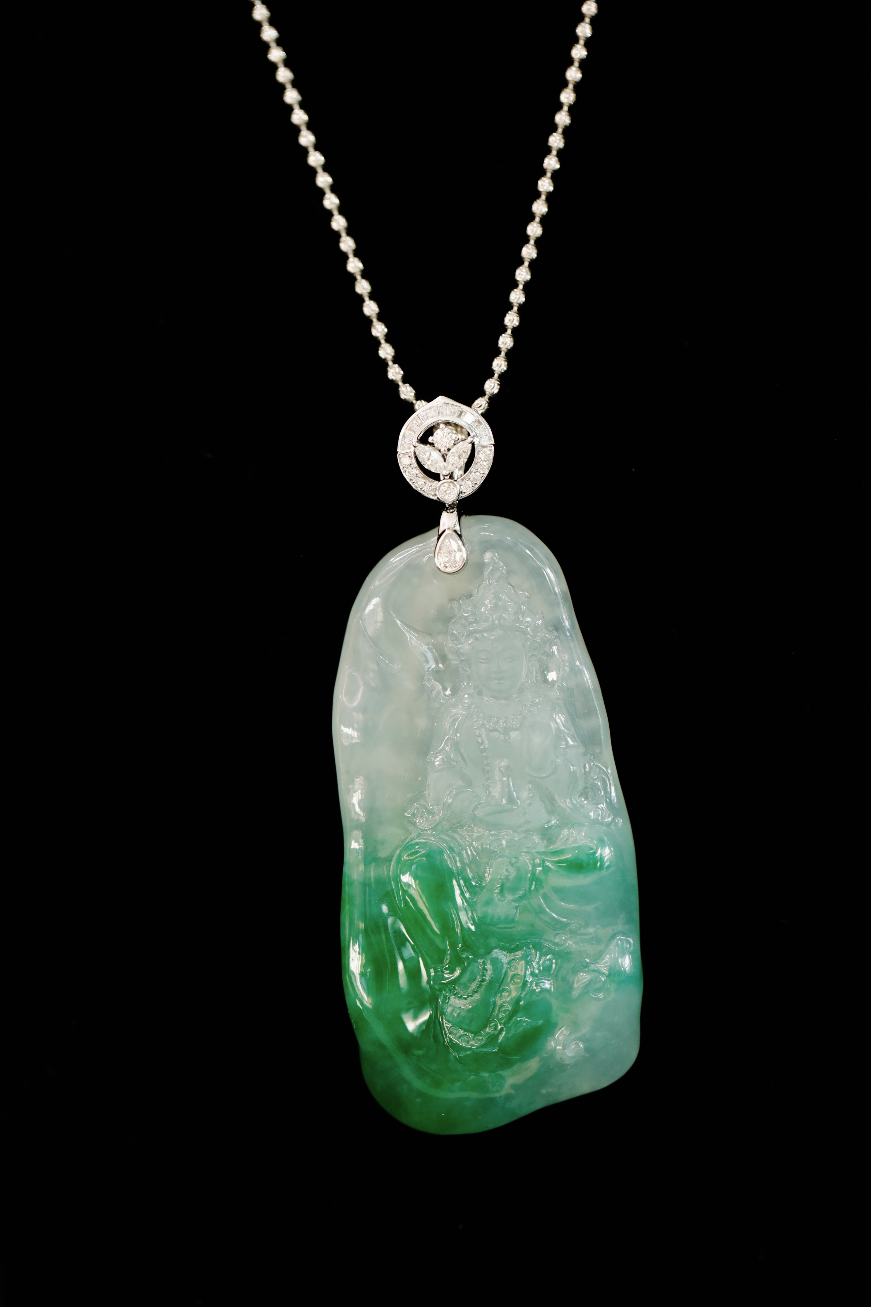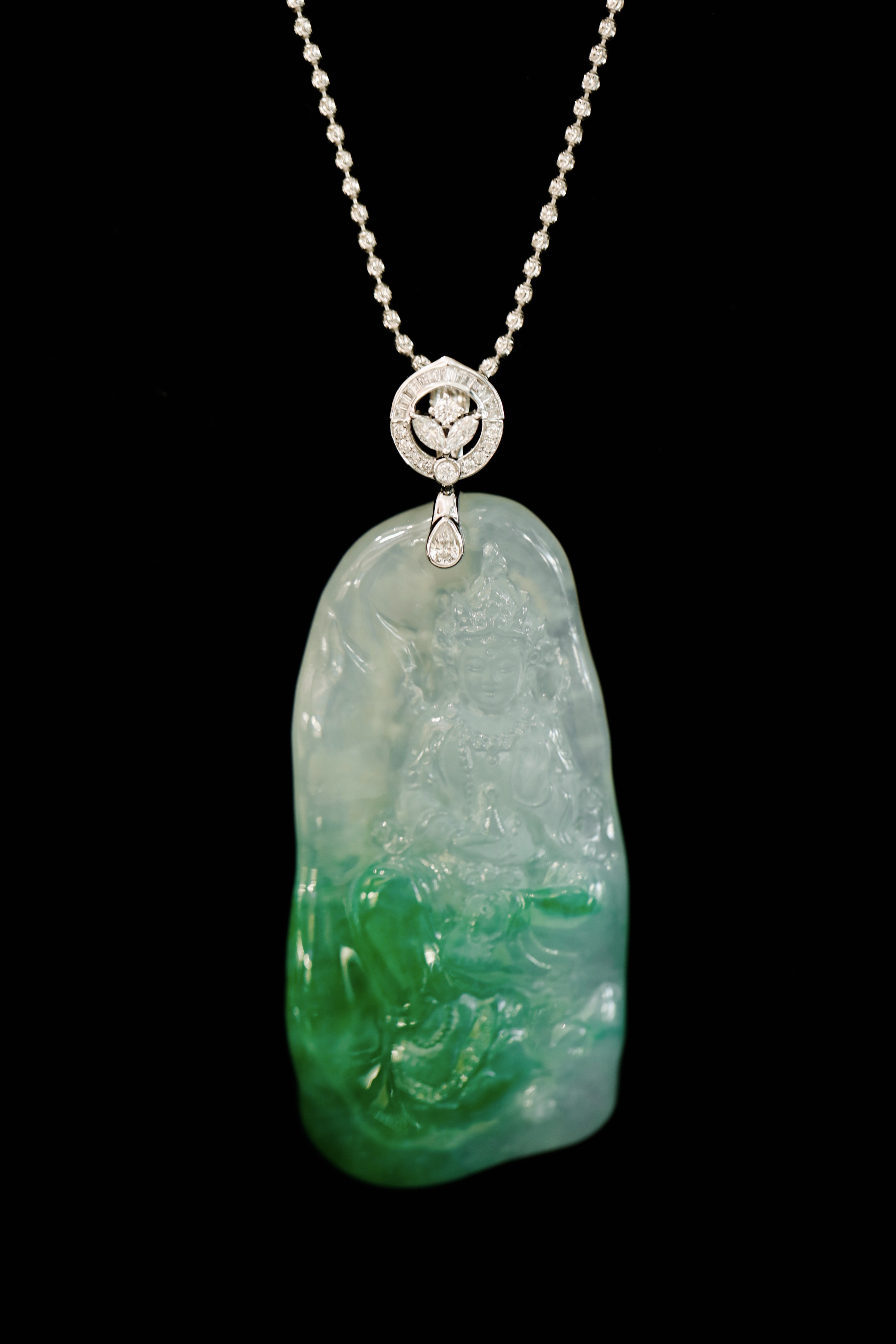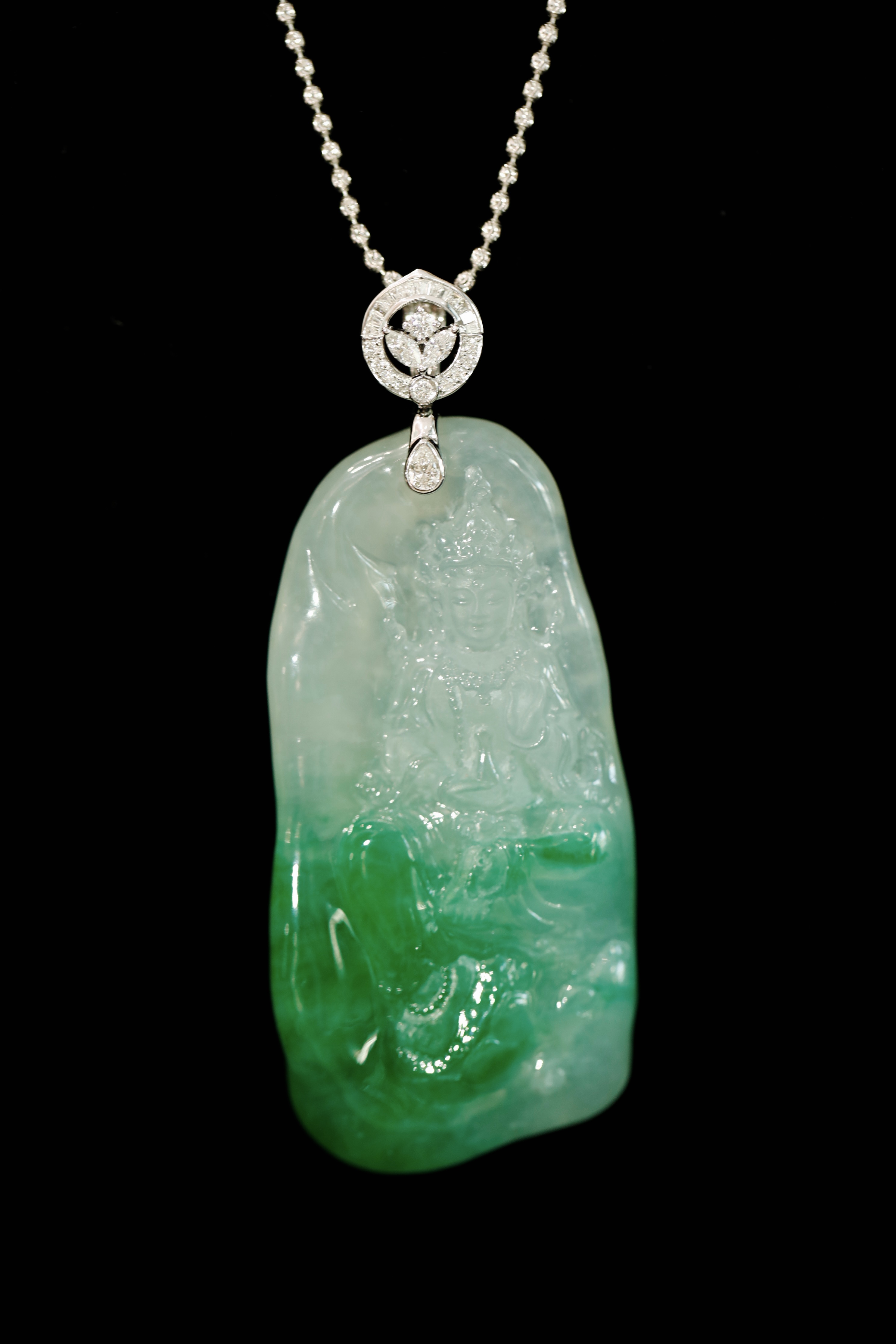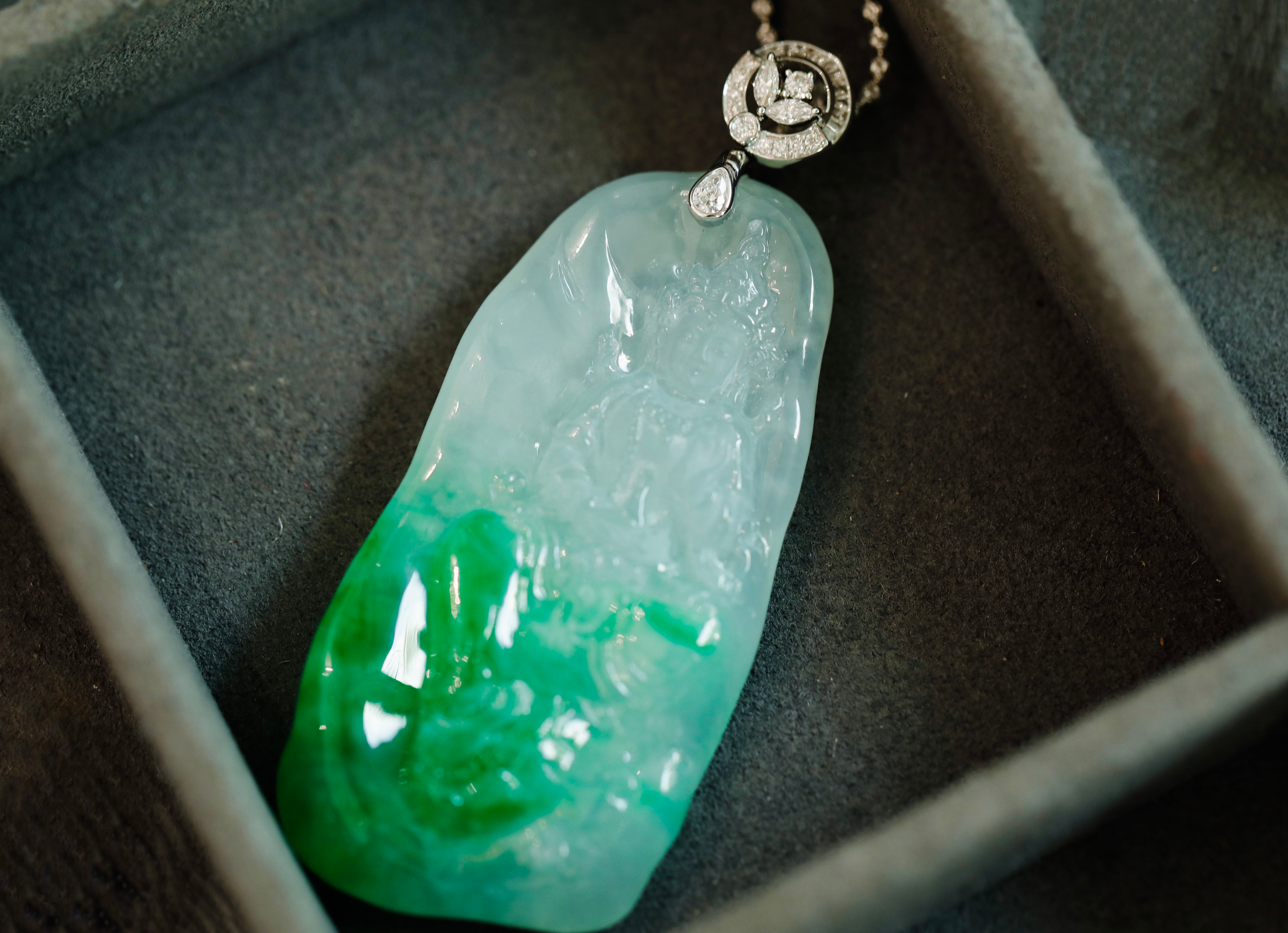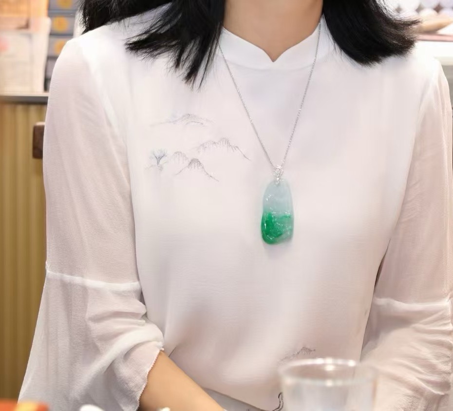 身形较为高大或则气场强大的女性,或者一直想买个大绿吊坠,预算又不很高的,这件入手很合适。现在市场上,这么大牌面的满绿有种水的,动辄六位数了。