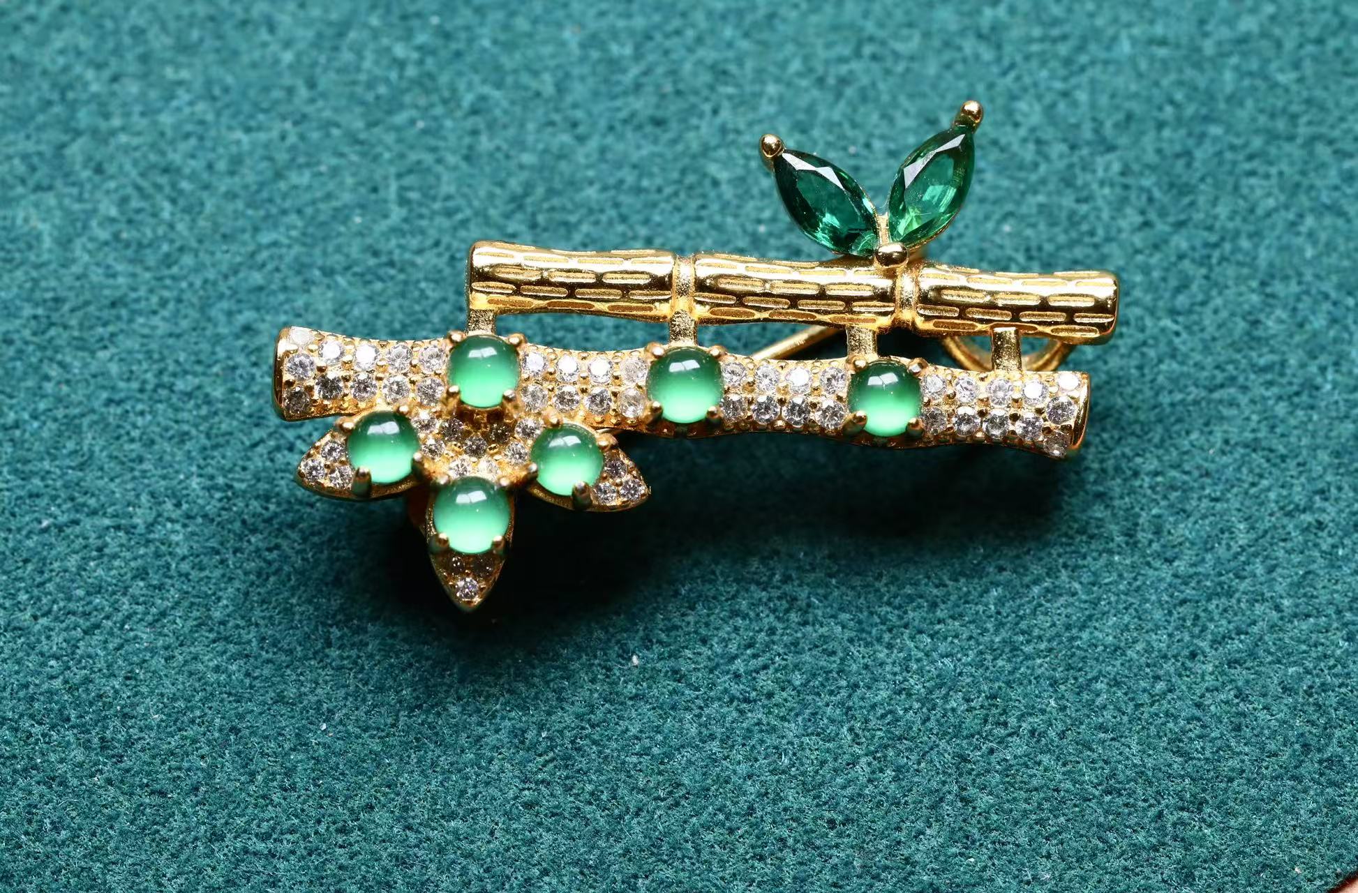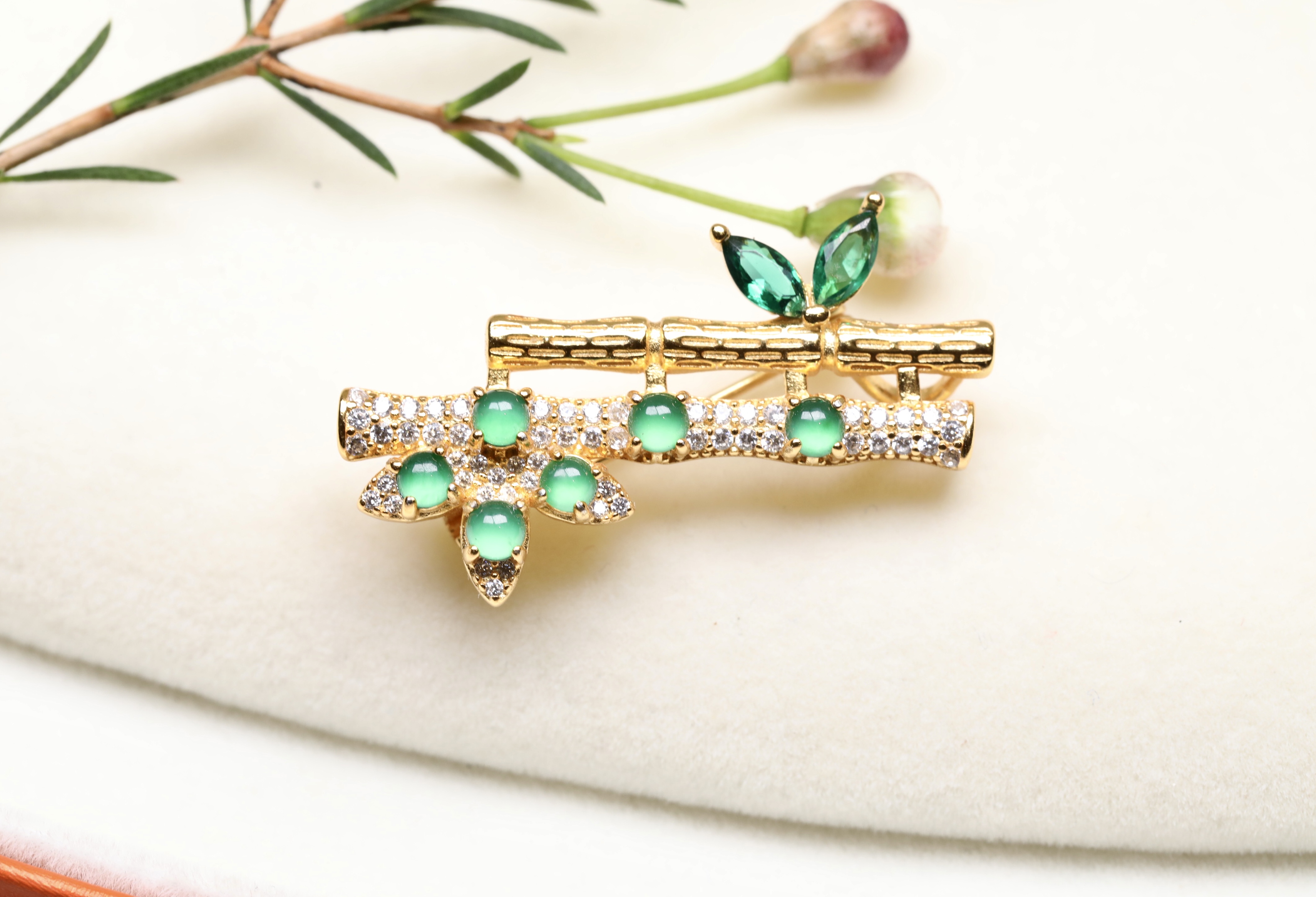 于琳琅饰品间,这枚“希望”胸针宛如一道光,轻易攫住目光,以长形竹节为型,承载着无尽美好期许。