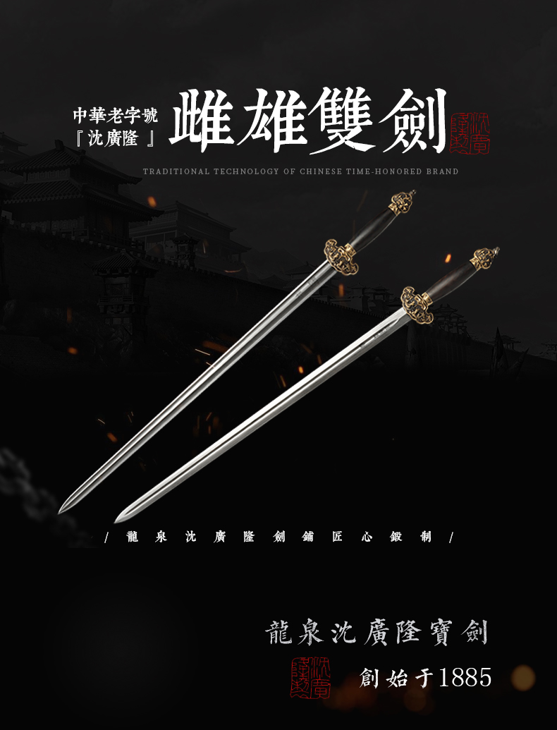 - 龙泉沈广隆剑舖创始于1885年(清光绪)位于浙江省龙泉市,是当地唯一一家“子承父业”一脉相承的中华老字号宝剑生产企业,是国家级非物质文化遗产龙泉宝剑项目保护单位,并以“天下第一剑”闻名于海内外....