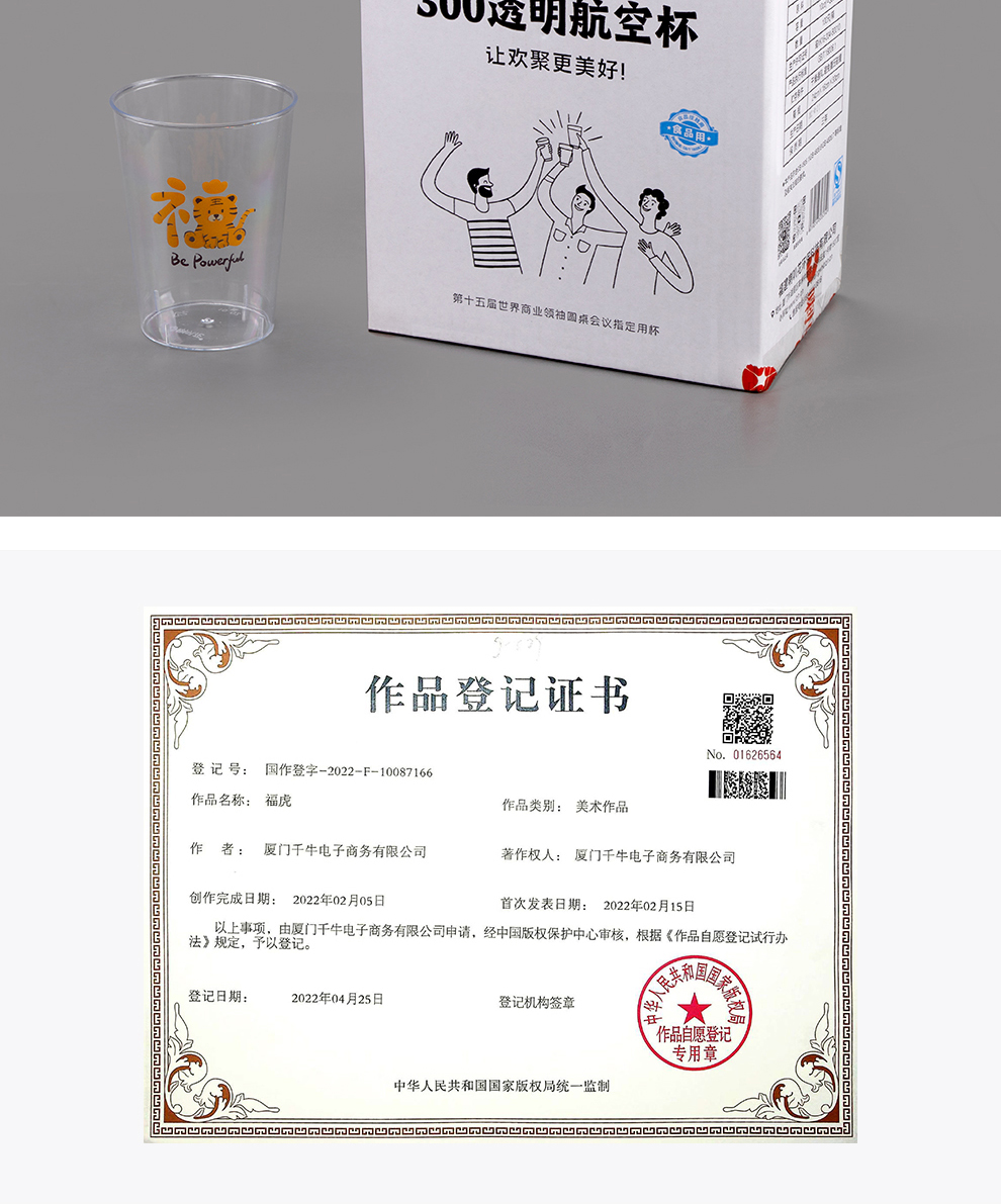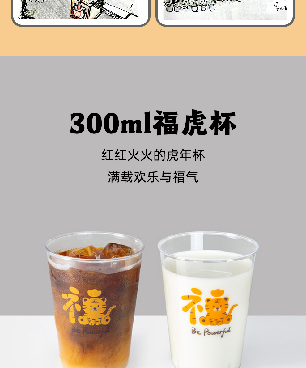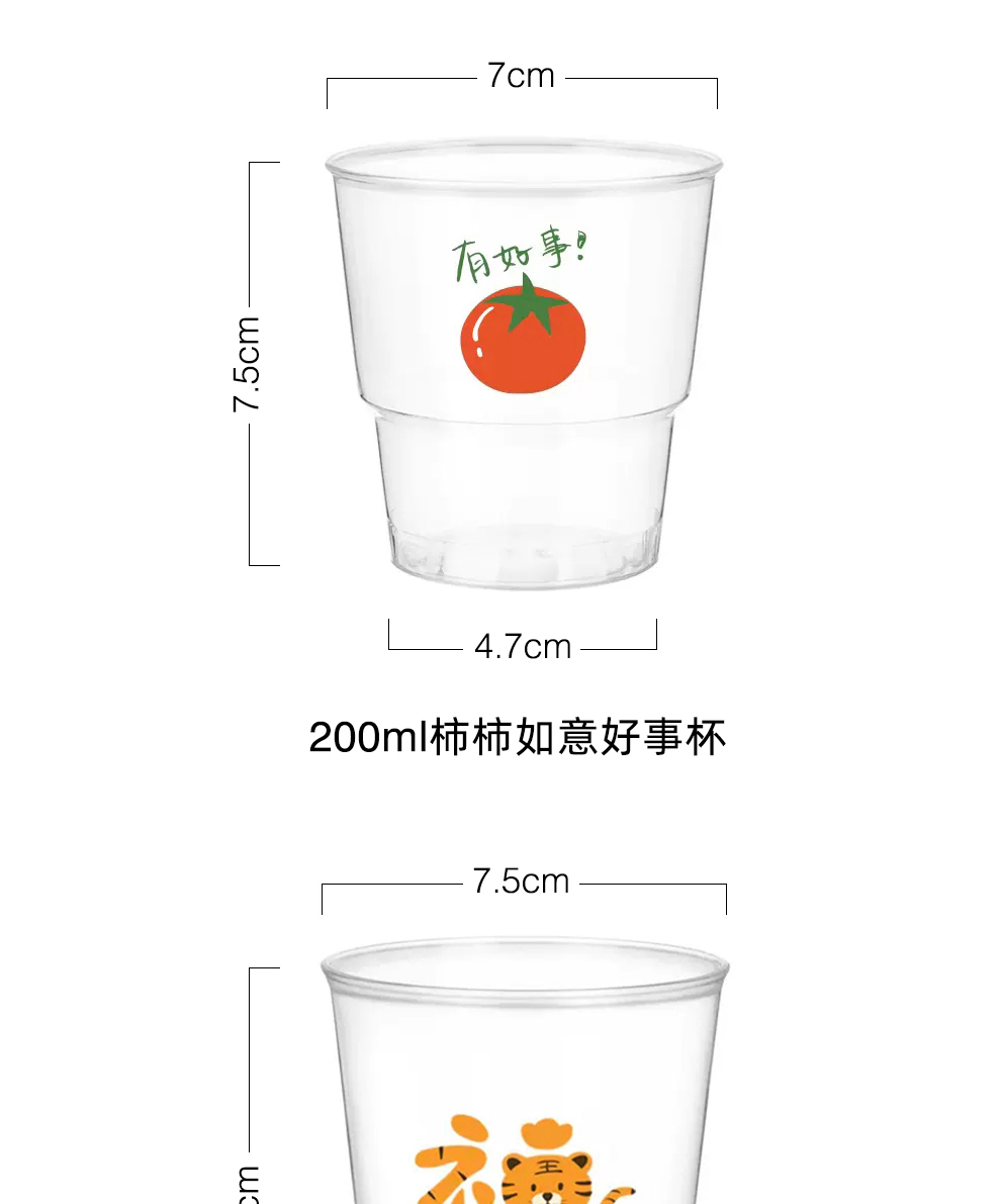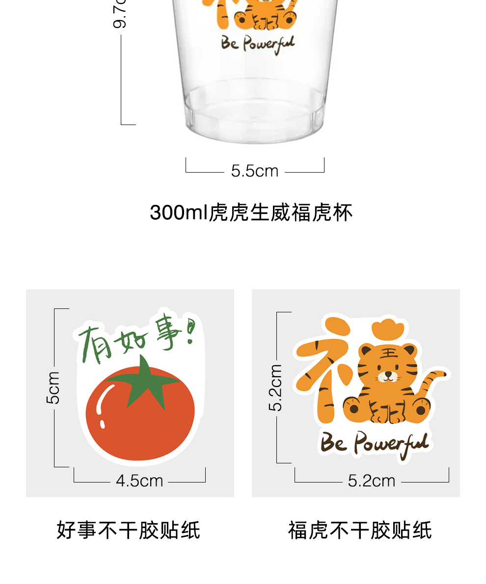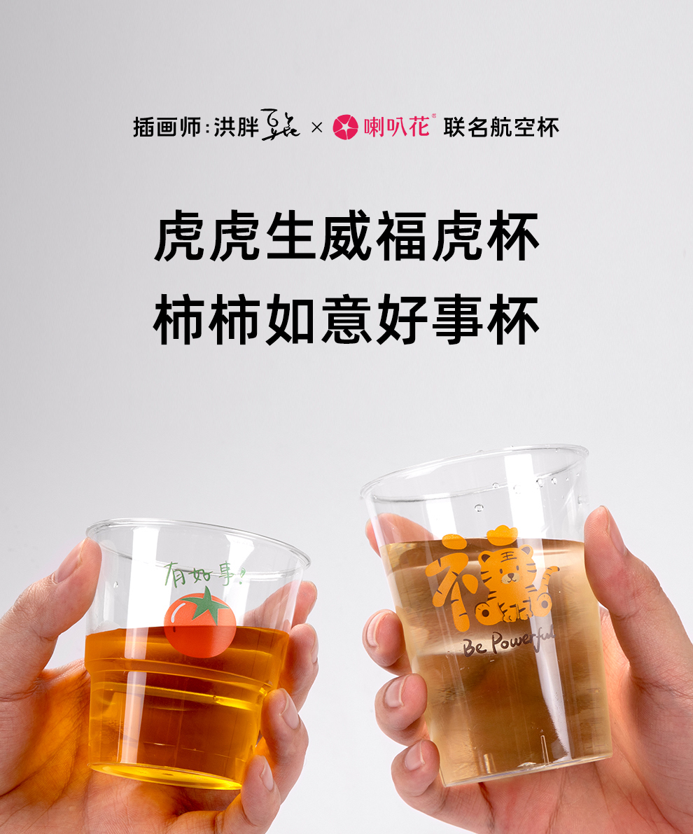 【插画师 洪胖豆花 x 喇叭花 联名航空杯】虎虎生威福虎杯&柿柿如意好事杯 创意不干胶贴纸