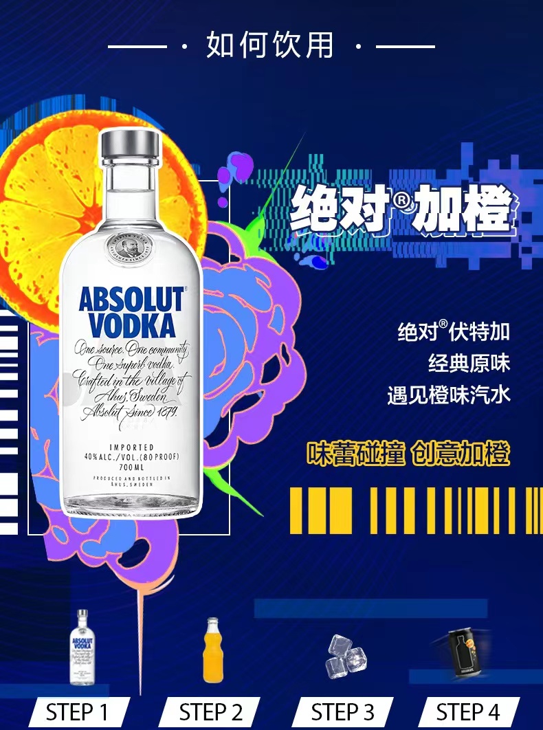 绝对伏特加 瑞典进口经典Absolut伏特加 40度500ml 洋酒烈酒