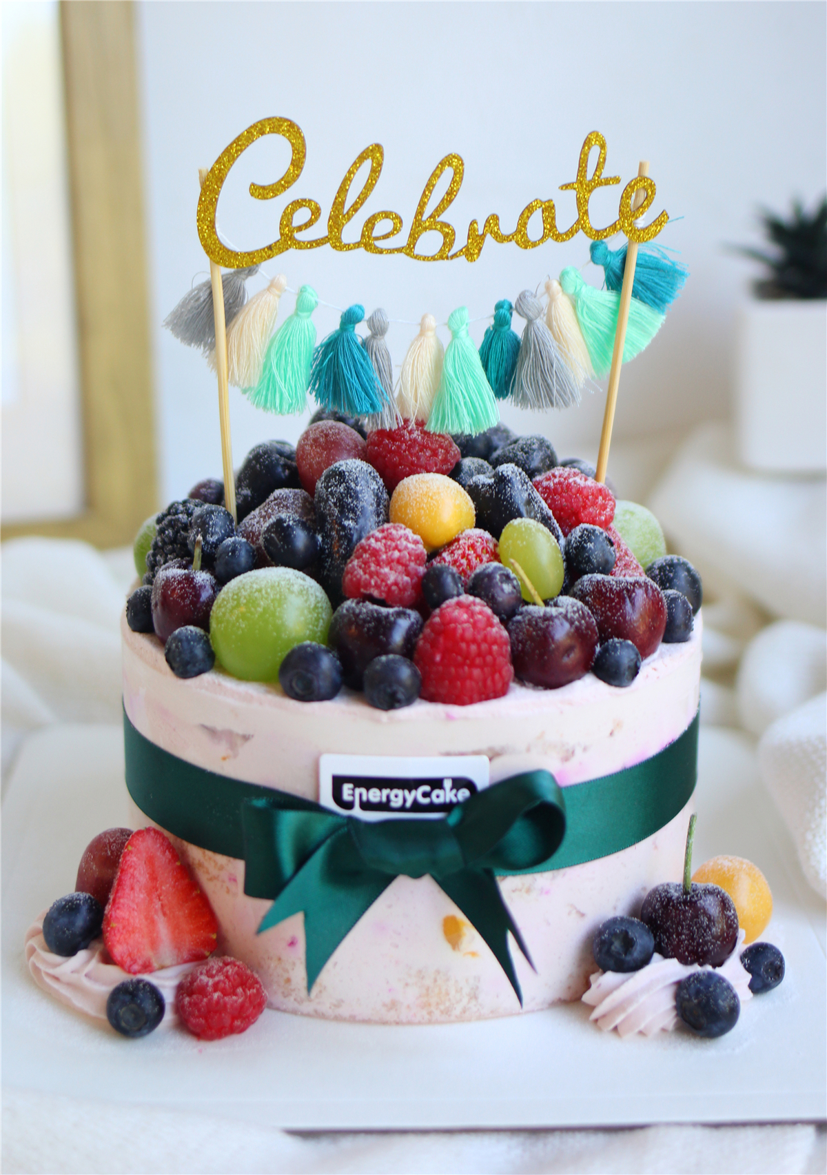 ~温润的三层戚风蛋糕胚,满满的应季水果夹层,草莓覆盆子口味清甜淡奶油~
