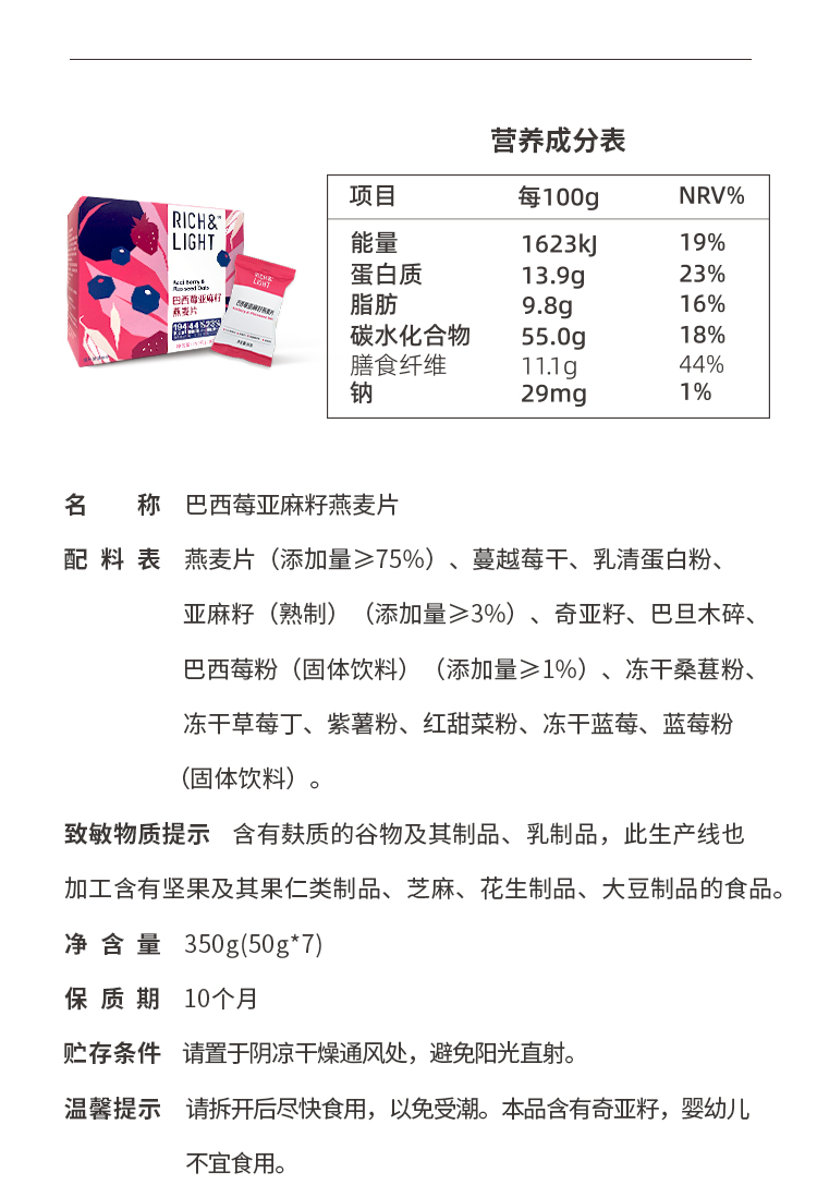 RICH&LIGHT 可可奇亚籽/巴西莓亚麻籽燕麦片 350g