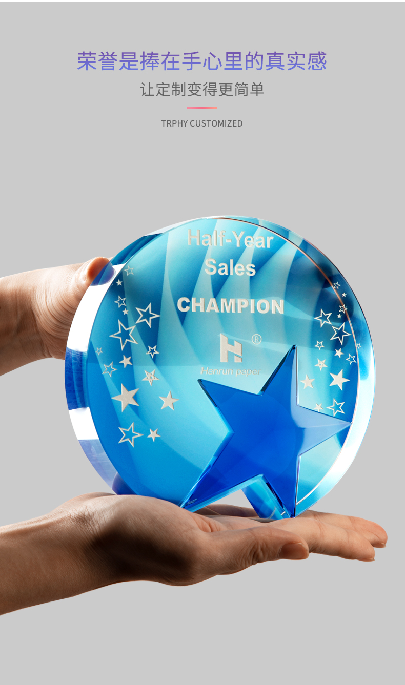 创意水晶奖杯定制奖杯定做五角星比赛冠军荣誉颁奖牌制作纪念品